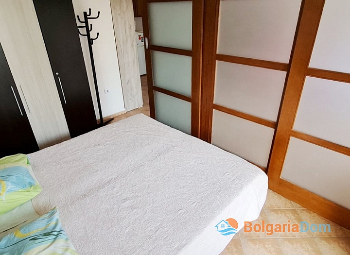 Dvoupokojový byt má společnou koupelnu. plocha 58 m² Dispozice: obývací pokoj s kuchyní a jídelním koutem, ložnice, koupelna, balkon. Krásný výhled na bazén. Byt se nachází ve 3. patře v budově s výtahem. Byt se prodává s nábytkem a domácími spotřebiči.