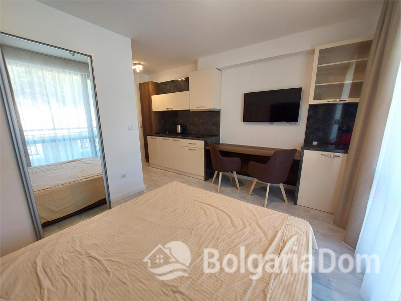 Komplex se nachází na jedinečném místě a nabízí jedinečnou kombinaci výhledů na moře, tyčících se zelených kopců pohoří Stará Planina, příjemnou atmosféru, pohodlí a klid. Jedinečné středomořské klima Sveti Vlas, jedinečná směs horských a mořských vzdušných mas, která čistí vzduch, je vhodné pro celoroční léčbu dýchacích cest, což výrazně přispívá k vaší pohodě během dovolené v resortu. Komplex bude zahrnovat restauraci, lázeňské centrum, ostrahu a recepci. Součástí komplexu je bazén s relaxačními zónami, lehátky a slunečníky. Toto studio o rozloze 31 m² se nachází ve druhém patře sedmipatrové budovy s výtahem. Byt se prodává zařízený a vybavený.