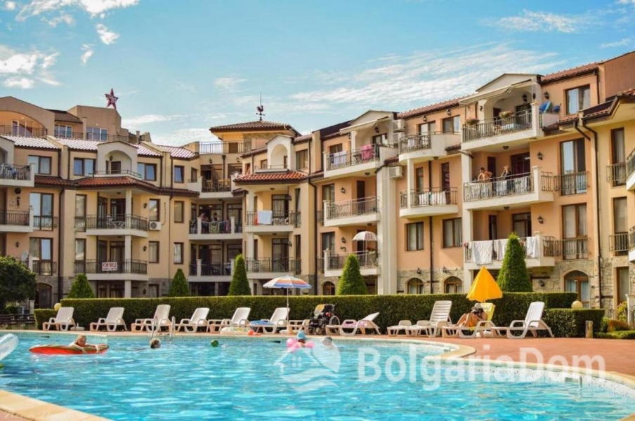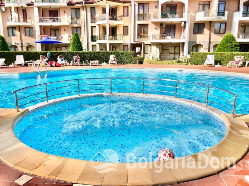 Nabízíme k prodeji dvoupokojový apartmán s výhledem na bazén v malém rezidenčním komplexu v jižní části Slunečného pobřeží, nedaleko pláže Cacao Beach.