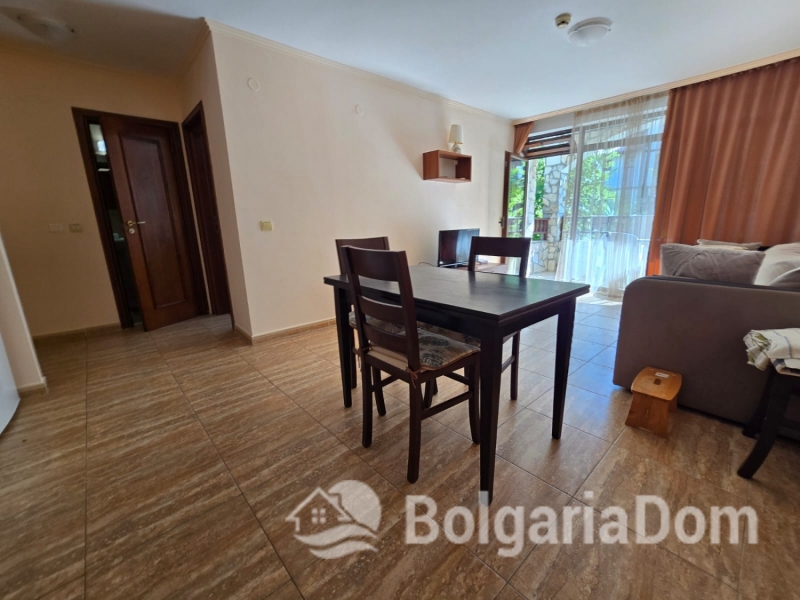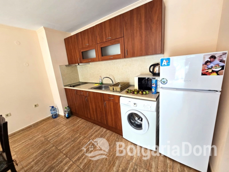 Eine gemütliche Zweizimmerwohnung steht im exklusiven Etara-Komplex im Ferienort Sveti Vlas zum Verkauf. Etara 1 ist ein luxuriöser Komplex direkt am Strand von Sveti Vlas. Der Komplex gehört zum Mini-Resort Dinevi Resort. Der Yachthafen ist nur 300 Meter entfernt. Das Stadtzentrum erreichen Sie in nur 10 Gehminuten. Zahlreiche Annehmlichkeiten wie Cafés, Clubs, Restaurants, Bars, Schönheitssalons und vieles mehr befinden sich in unmittelbarer Nähe. Der Komplex besteht aus wunderschönen Gebäuden unterschiedlicher Höhe im einzigartigen altbulgarischen Stil mit weißen Fassaden, kunstvollen Säulen, originalen Fenstern und Holzelementen. Die authentische, schräge Dachkonstruktion auf verschiedenen Ebenen wurde erhalten. Keramische Dachziegel verleihen dem Komplex einen besonderen Charme. Die meisten Wohnungen bieten einen malerischen Blick auf das Meer und den Ferienort. Das Gelände des Komplexes ist gepflegt und umzäunt. Die Anlage bietet Außenpools, Restaurants, ein Café, eine Pianobar, ein Fitnesscenter, ein Geschäft und Parkplätze. Für Sicherheit ist gesorgt. Über die Wohnung: Gesamtfläche: 67 m². Aufteilung: Eingangsbereich, Wohnzimmer mit Küche und Essbereich, Schlafzimmer, Badezimmer und Balkon. Die Wohnung befindet sich im Erdgeschoss. Die Wohnung ist komplett möbliert, in exzellentem Zustand und bezugsfertig. Diese Immobilie eignet sich ideal sowohl für die Ferienvermietung als auch zum ganzjährigen Wohnen in einem der malerischsten Ferienorte Bulgariens. Akt 16.