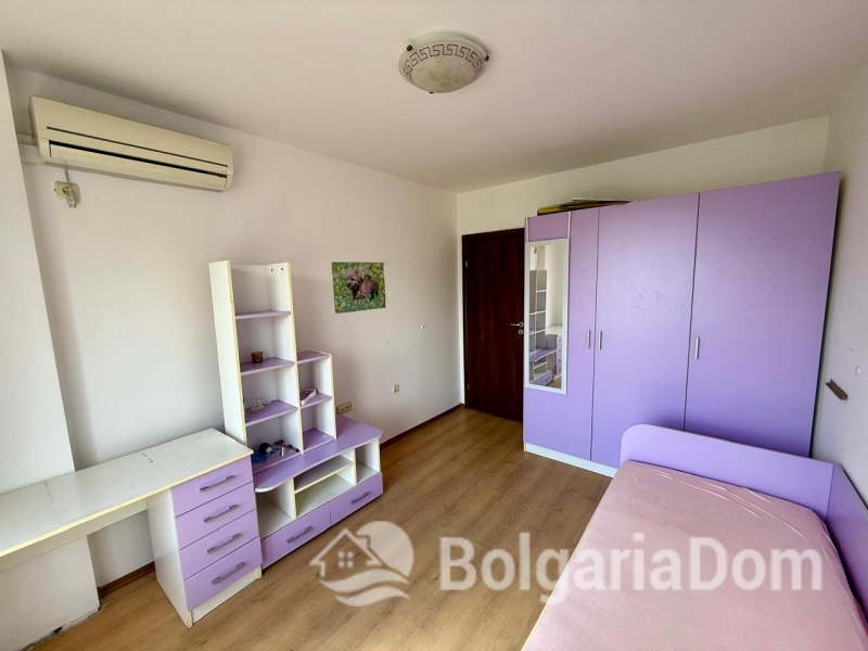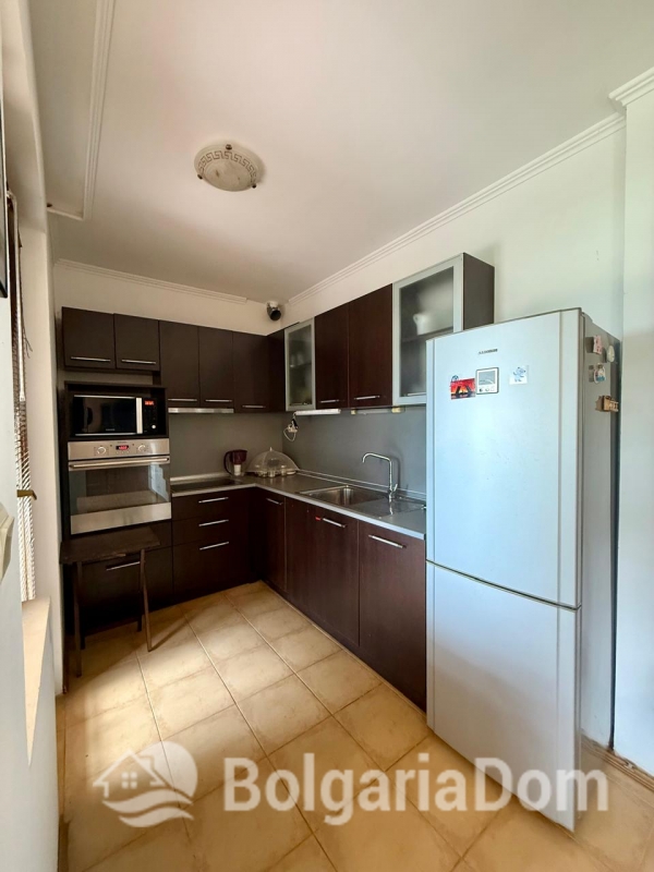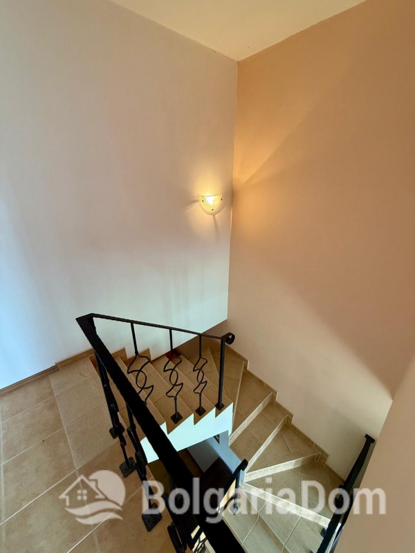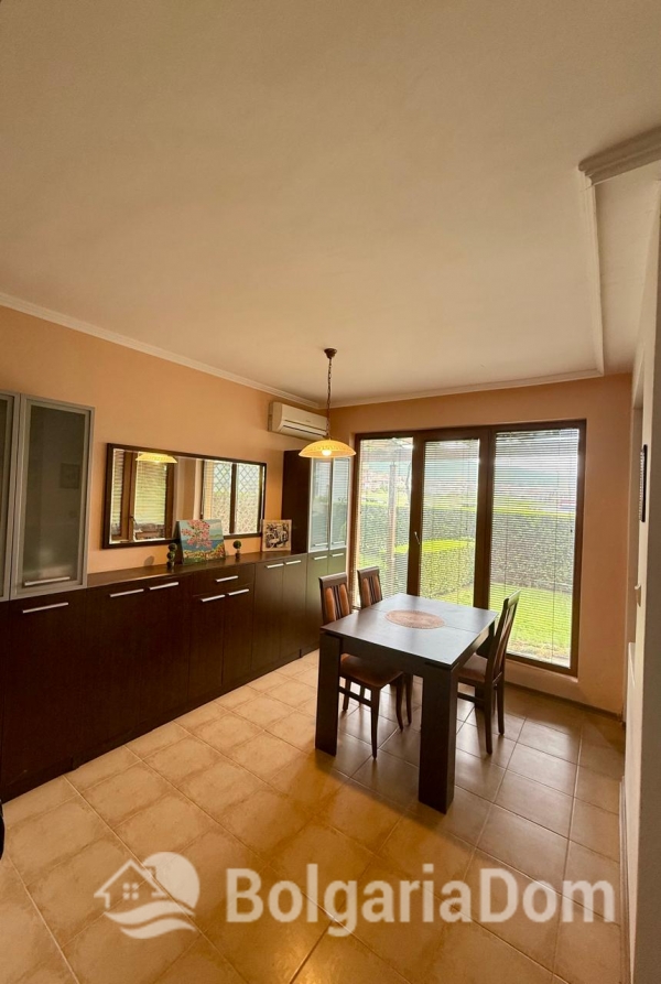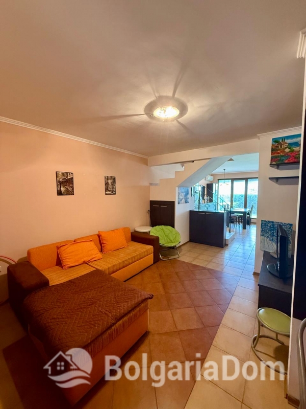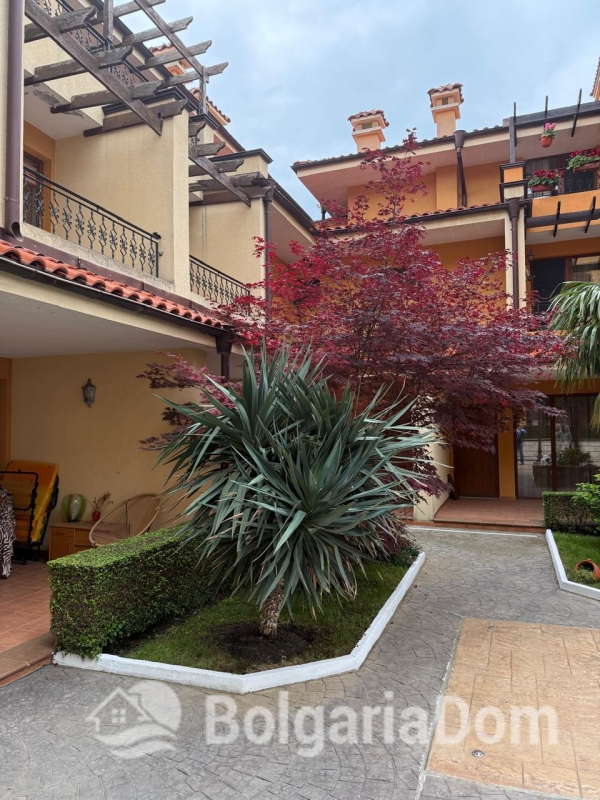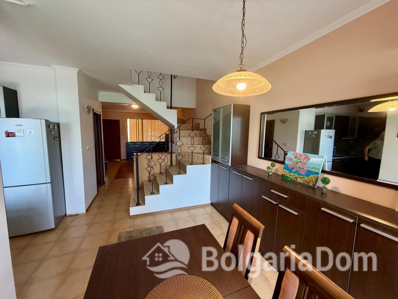 Wir bieten ein geräumiges Reihenhaus in der Wohnanlage Marina Ville zum Verkauf an. Die Anlage Marina Ville befindet sich im beliebten Luxusresort Sveti Vlas. Nur 500 Meter vom Strand entfernt. Genießen Sie wunderschöne Orte zum Entspannen, saubere Luft und ein maritimes Klima. Alle Annehmlichkeiten des täglichen Bedarfs sind bequem zu Fuß erreichbar. Dieses Reihenhaus mit drei Schlafzimmern bietet eine Wohnfläche von 121,24 m². Es verfügt über eine Eingangshalle, ein Wohnzimmer, eine separate Küche mit Essbereich, zwei separate Schlafzimmer im Obergeschoss, eine Terrasse und einen privaten Innenhof mit Grill. Möbliert. Guter Zustand. Die Anlage bietet einen Swimmingpool mit Liegewiese, einen Kinderspielplatz und eine Café-Bar. Die Anlage ist fertiggestellt (Act 16). Die jährlichen Instandhaltungskosten betragen 10 Euro/m².