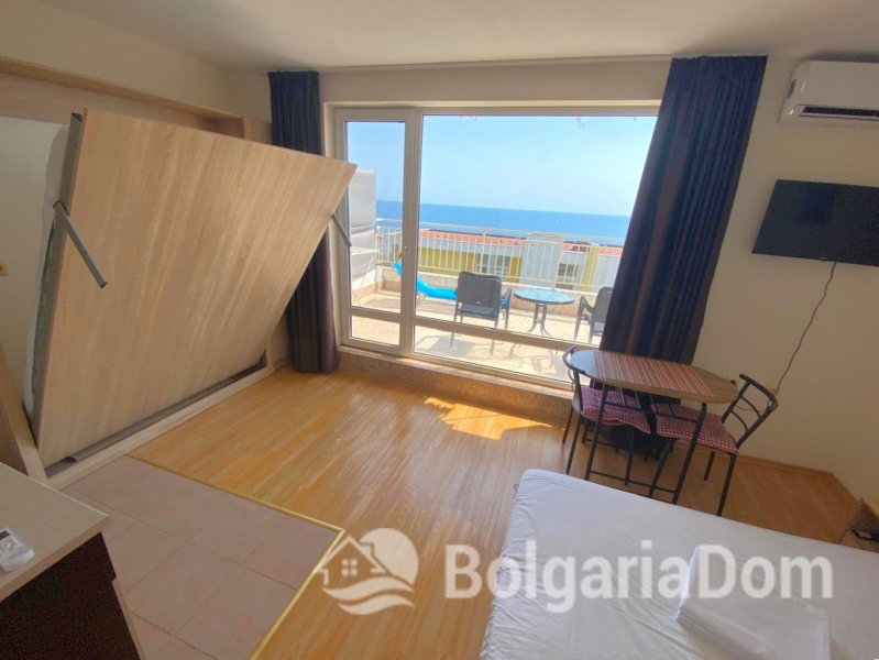Wir bieten ein hervorragendes Studio mit wunderschönem Meerblick in einer großen Familienanlage mit umfassender Infrastruktur zum Verkauf an – dem Grand Resort Fort Knox. Der Crown Fort Club ist eine renommierte Ferienanlage in zweiter Meereslinie im einzigartig schönen Robinson-Gebiet zwischen den Ferienorten Elenite und Sweti Wlas. Die Anlage ist Teil der größten Anlage an diesem Küstenabschnitt – dem Fort Knox Grand Resort. Luxuriöse Sandstrände sind nur 300 Meter entfernt. Das Studio-Apartment ist 47 m² groß und bietet eine praktische Raumaufteilung: einen Eingangsbereich, ein Zimmer mit Küche und Sitzecke, ein Badezimmer und einen großen Balkon mit Meerblick. Die Wohnung wird mit neuen Möbeln und Geräten verkauft. Sie befindet sich im sechsten Stock eines Gebäudes mit Aufzug und bietet Platz für vier Personen. Die Anlage wurde aus hochwertigen Materialien und mit modernen Technologien erbaut. Ganzjähriges Wohnen ist möglich. Sichere Außenparkplätze stehen auf dem Gelände des Komplexes zur Verfügung.