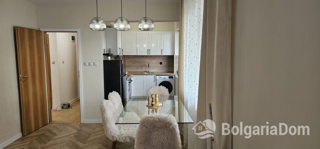 Wir bieten eine komplett möblierte Wohnung nach einer hochwertigen Designerrenovierung zum Verkauf an – mit neuen Möbeln, Küche, Haushaltsgeräten und Inverter-Klimaanlagen mit Garantie. Aufteilung: Wohnzimmer mit Küche, 2 Schlafzimmer, Badezimmer und separates WC, 2 Terrassen. Die Wohnung ist 87 m² groß, befindet sich im Erdgeschoss und ist nach Süden ausgerichtet. Ausstattung: Kostenloser Parkplatz, Lademöglichkeit für Elektroautos, Act 16, separate Wasser- und Stromkosten. Ideal sowohl zum Wohnen als auch als Kapitalanlage – sofort bezugsfertig oder vermietbar. Lage: 2,5 km vom Sonnenstrand, 2 km von Lidl, 200 m von ganzjährig geöffneten Supermärkten. Keine Nebenkosten • Südausrichtung