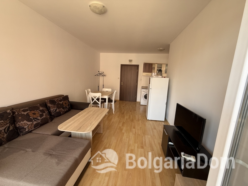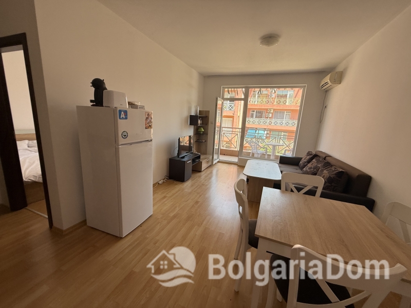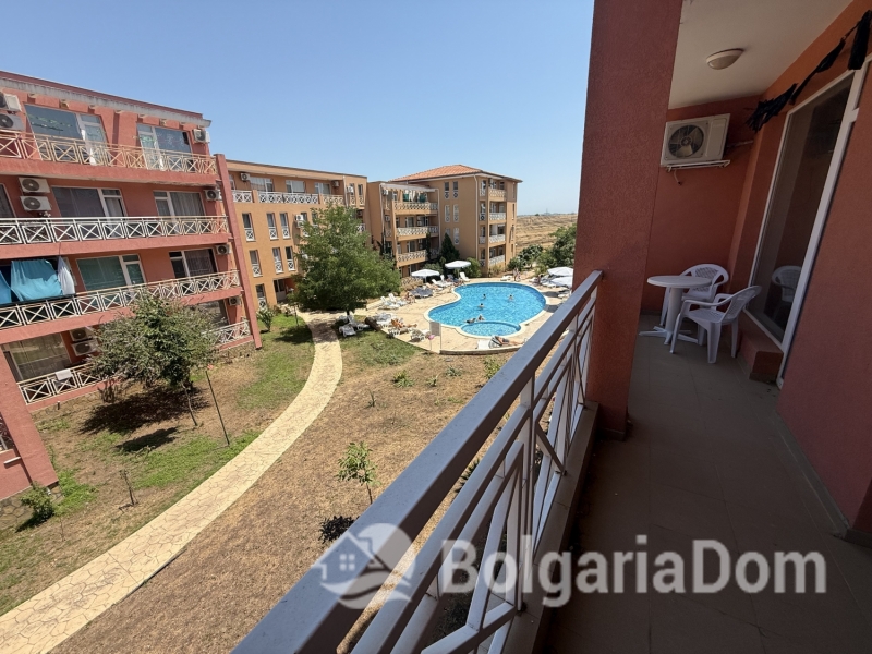 Wir bieten Ihnen eine gemütliche und helle 1-Zimmer-Wohnung im großen Wohnkomplex Sunny Day 6 zum Kauf an. Die Wohnung hat eine Wohnfläche von 57 m² und besteht aus einem Wohnzimmer mit separater Küchenzeile, einem Schlafzimmer, einem Badezimmer und einem Balkon. Sie bietet Blick auf den Pool und die gepflegte Außenanlage. Die Wohnung befindet sich im zweiten Obergeschoss. Die Wohnung wird möbliert und ausgestattet verkauft und eignet sich daher ideal sowohl für saisonale Urlaubsaufenthalte als auch zum ganzjährigen Wohnen. Der Komplex „Sunny Day 6“ liegt auf einem malerischen Hügel am Fluss Hadjiyska, nur 4 km von den Stränden von Sonnenstrand und 7 km von der historischen Stadt Nessebar entfernt. Der 60.000 m² große Komplex bietet seinen Bewohnern folgende Annehmlichkeiten: - Mehrere Außenpools - Tennis-, Fußball- und Basketballplätze - Kinderspielplätze - Café und Supermarkt - Sicherheitsdienst und Parkplätze Das umzäunte und parkähnlich angelegte Gelände des Komplexes gewährleistet Ruhe, Sicherheit und hohen Wohnkomfort. Es ist ein hervorragender Ort zum Entspannen, Wohnen und eine lohnende Investition. Gesetz Nr. 16. Nebenkosten.