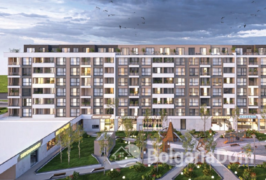 Wir bieten Ihnen eine 1-Zimmer-Wohnung mit Blick auf die gepflegte Anlage in einem neuen Wohnkomplex in Burgas, Stadtteil Madika, zum Kauf an. Die Zahlung kann in Raten über bis zu 3 Jahre erfolgen. Diese 61,08 m² große 2-Zimmer-Wohnung besticht durch ihre praktische Raumaufteilung mit großzügigen Zimmern und viel Stauraum: ein Eingangsbereich mit Platz für einen großen Einbauschrank, ein geräumiges Wohnzimmer mit Küchenzeile, Essbereich und Sitzecke, ein separates Schlafzimmer sowie ein Balkon mit Blick auf die Anlage, der von beiden Zimmern aus zugänglich ist. Ähnliche Wohnungen sind auf jeder Etage des achtstöckigen Gebäudes mit Aufzug geplant. Der Komplex besteht aus drei Gebäuden, die durch einen Gemeinschaftsbereich mit Grünanlagen, Swimmingpool und Sportplätzen verbunden sind. Dieses Gebiet entwickelt sich derzeit am schnellsten in Burgas und verspricht, mit anderen Stadtteilen zu konkurrieren. Es bietet zahlreiche Vorteile: schnelle und bequeme Anbindung an die Autobahnen, eine komplett neue Infrastruktur, hohen Wohnkomfort und moderne Technologien. Die Gebäude werden mit modernsten und hochwertigsten Materialien errichtet: • Hochwertige Wärmedämmung • Hochwertige Dreifachverglasung • Aufzüge für 6–8 Personen Warum eine Wohnung in diesem neuen Komplex kaufen? • Hochwertige Bauweise nach modernen europäischen Standards • Hochwertige Materialien für einfache Instandhaltung Langlebigkeit und ein komfortables Zuhause.