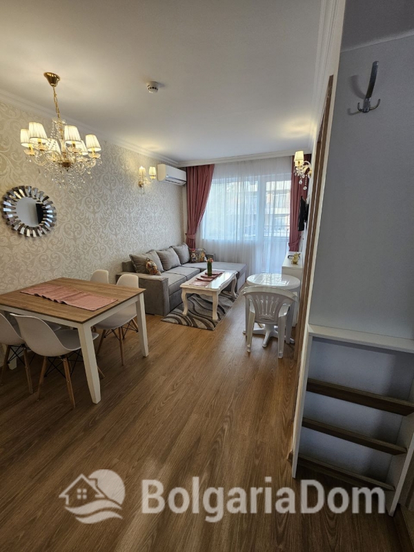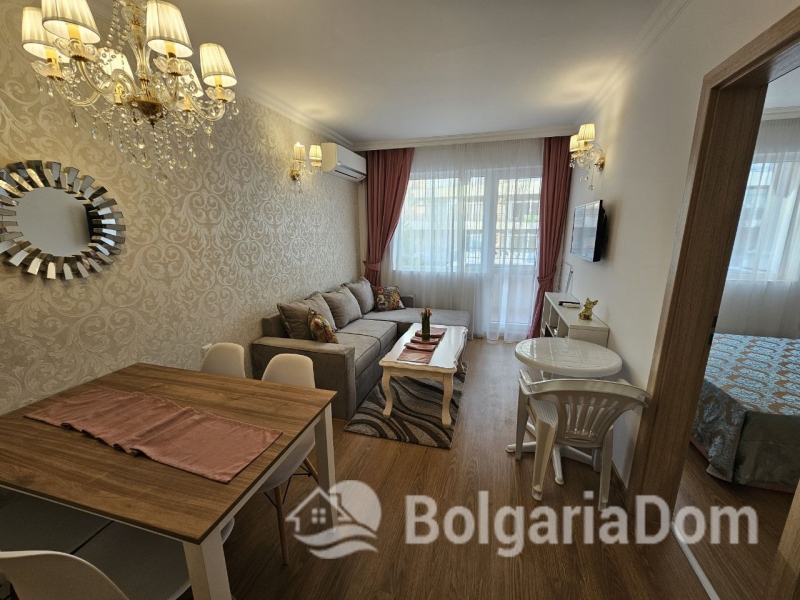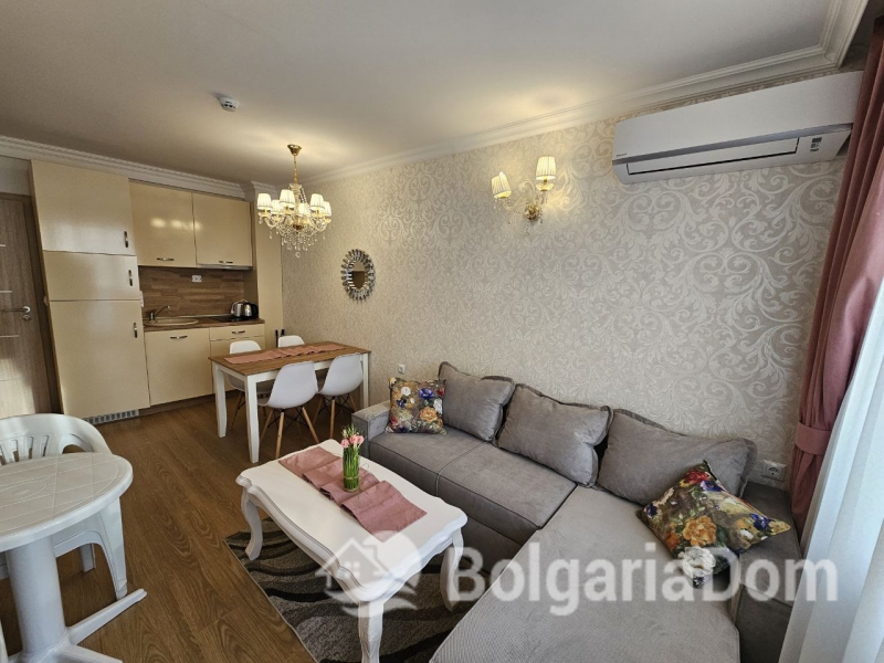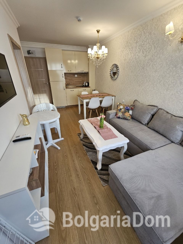 Wir bieten eine gemütliche 2-Zimmer-Wohnung im modernen Wohnkomplex Sweet Homes 6 in Sunny Beach zum Verkauf an. Die Wohnung ist komplett möbliert und mit neuen, modernen Geräten ausgestattet. Sie bietet direkten Zugang zum Pool und zur gepflegten Gartenanlage. Wohnfläche: 45 m² Über den Komplex Sweet Homes 6 ist ein moderner Wohnkomplex mit ansprechender Architektur und zentraler Lage. Geeignet für Sommerurlaub und ganzjähriges Wohnen.