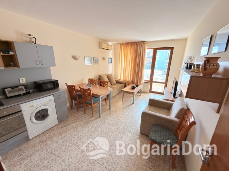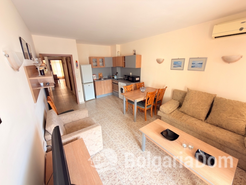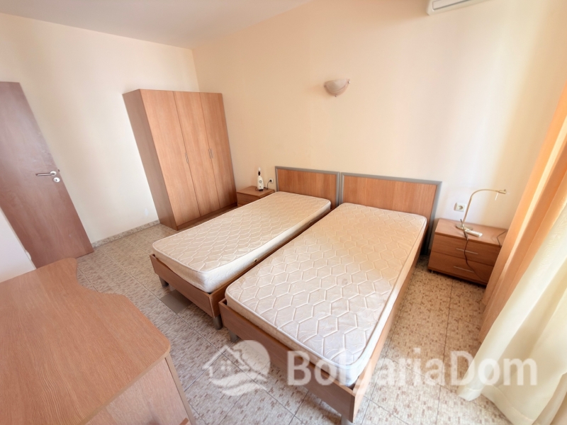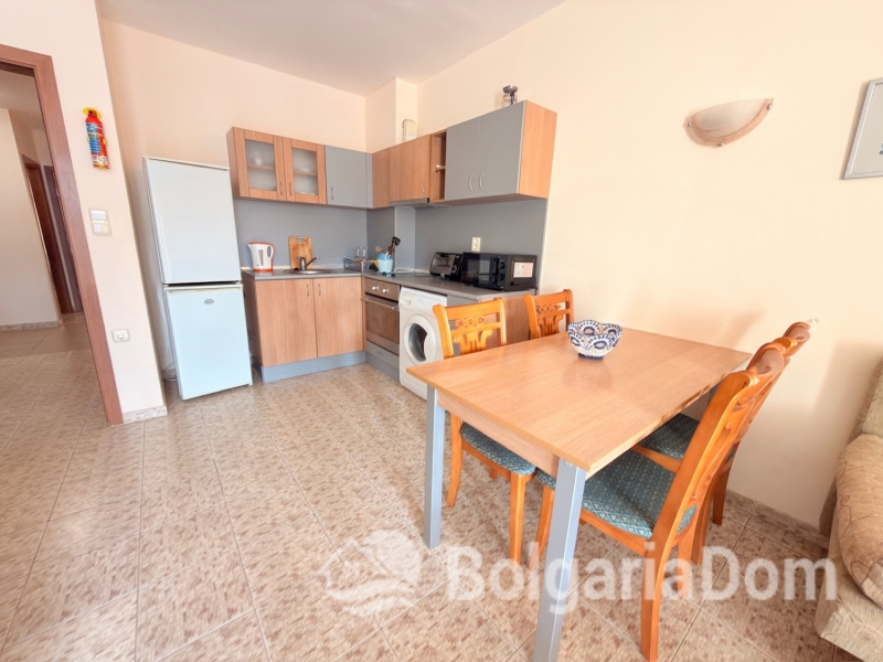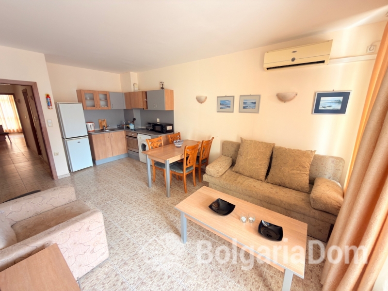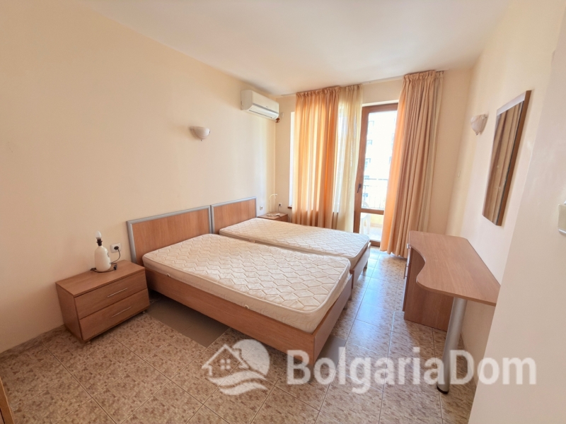 Wir bieten eine geräumige Drei-Zimmer-Wohnung mit Poolblick im Komplex „Royal Dreams“ im südlichen Teil des beliebten Ferienortes Sonnenstrand zum Verkauf an. Die Transaktionsunterlagen liegen vor. Die Anlage befindet sich im südlichen Teil des Resorts, 200 m von den Sandstränden entfernt. Die Stadt Nessebar ist nur einen kurzen Spaziergang entfernt. Alle Annehmlichkeiten wie Geschäfte, Cafés, Restaurants, Bars, Clubs, Sehenswürdigkeiten und vieles mehr sind bequem zu Fuß erreichbar. Das Gelände der Anlage ist angelegt und ganzjährig bewacht. Es umfasst einen Außenpool, einen Erholungsbereich und ein Restaurant. Parkplätze sind vorhanden. Die Wohnung befindet sich im zweiten Stock eines Gebäudes mit Aufzug. Die Wohnung ist 96 m² groß. Die Aufteilung umfasst: Eingangsbereich, Wohnzimmer mit Küche, zwei Schlafzimmer, zwei Badezimmer, einen Balkon mit Blick auf den Innenhof und einen Balkon mit Blick auf den Pool. Die Wohnung wird möbliert und inklusive Elektrogeräten verkauft. Die Anlage ist ab sofort bezugsfertig. Gesetz 16. Niedrige Haushaltstarife für Strom und Wasser.