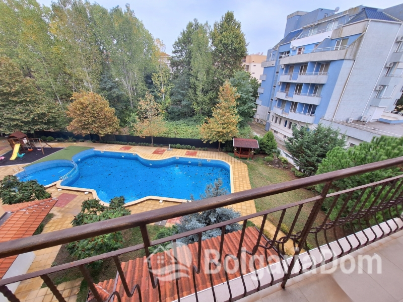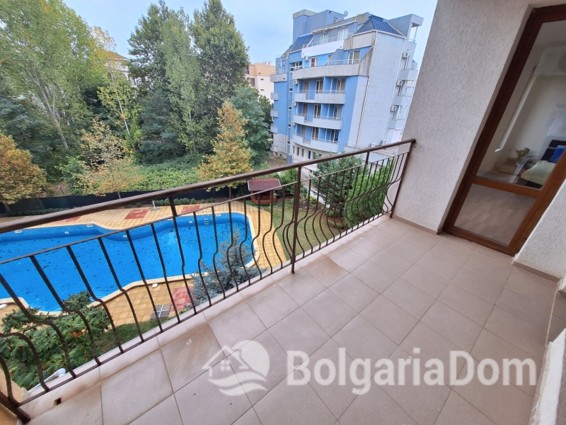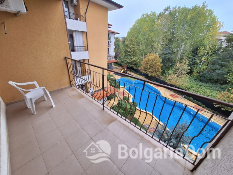 Wir bieten eine Zwei-Zimmer-Wohnung mit Poolblick im Komplex „Diamond Bay“ im nördlichen Teil des Ferienortes Sonnenstrand zu einem günstigen Preis an. „Diamond Bay“ ist ein moderner Ferienkomplex mit gut ausgebauter Infrastruktur – ideal für einen komfortablen Aufenthalt. Der Komplex verfügt über einen Swimmingpool mit Kinderbecken und Liegewiesen, ein Café, Parkplätze, ein Zutrittssystem und einen 24-Stunden-Sicherheitsdienst, Grünflächen und einen Wartungsservice. Diese Zwei-Zimmer-Wohnung hat eine Fläche von 65,40 m². Sie besteht aus einem Wohnzimmer mit Küche und Essbereich, einem großen Schlafzimmer mit drei Fenstern, einem Badezimmer und einem geräumigen Balkon mit herrlichem Blick auf den Pool und die Grünflächen des Komplexes. Die Wohnung befindet sich im 4. Stock eines Gebäudes mit Aufzug. Die Wohnung ist teilmöbliert und nach Osten ausgerichtet.