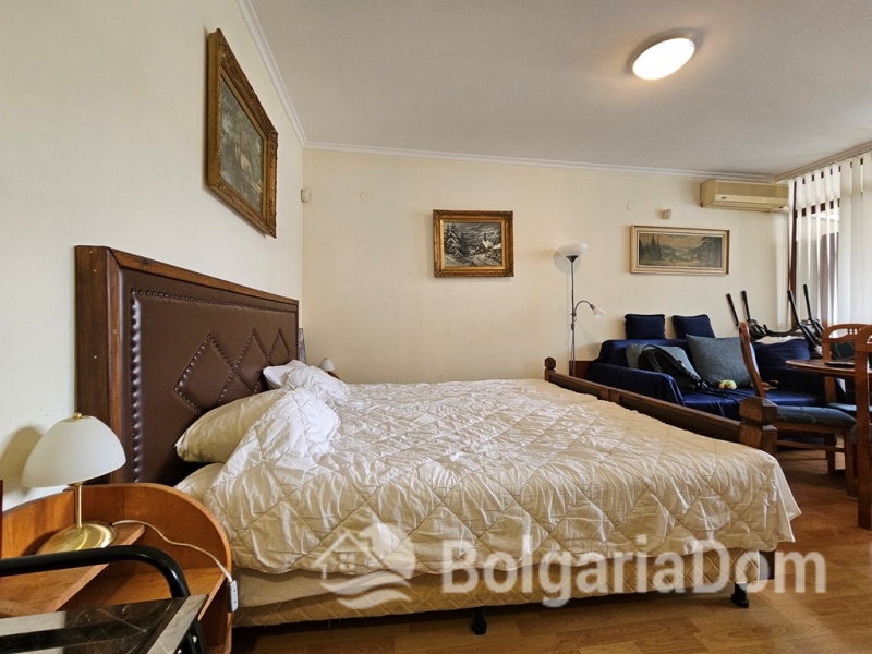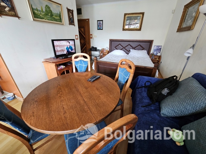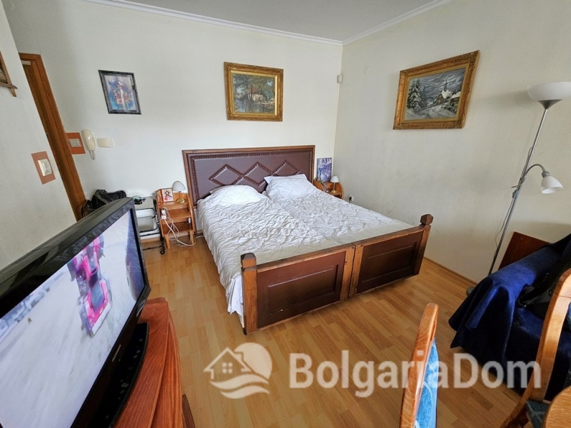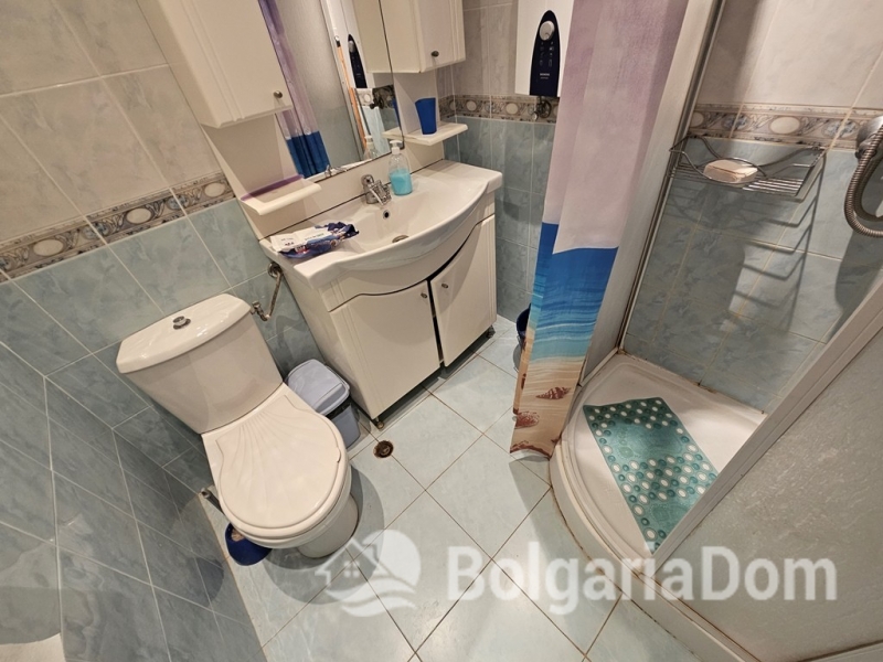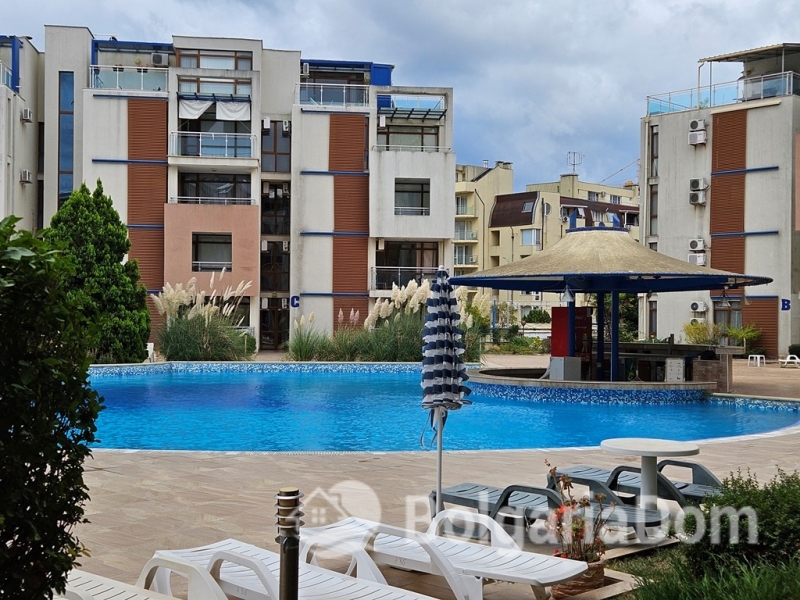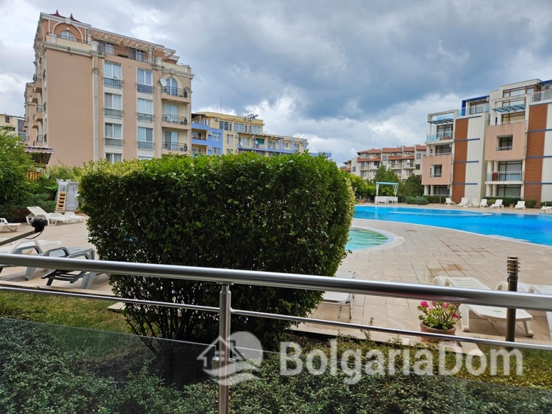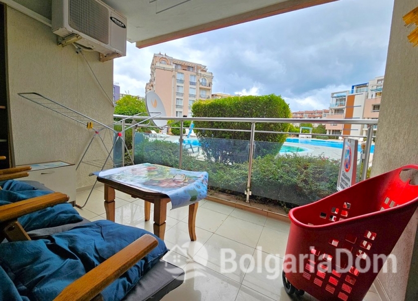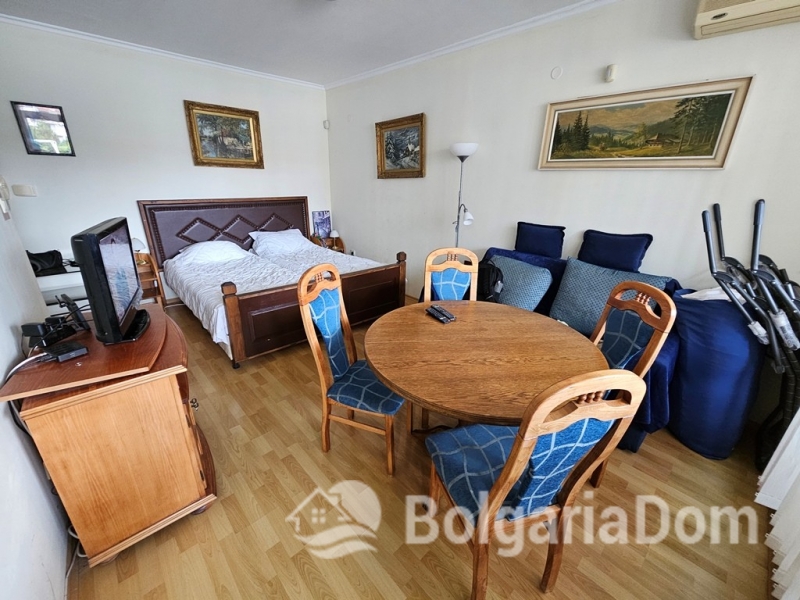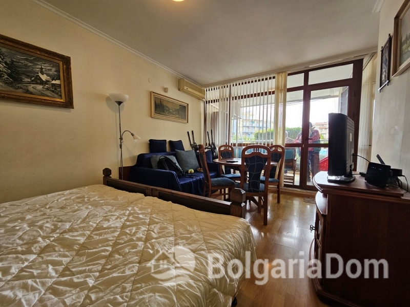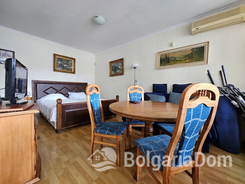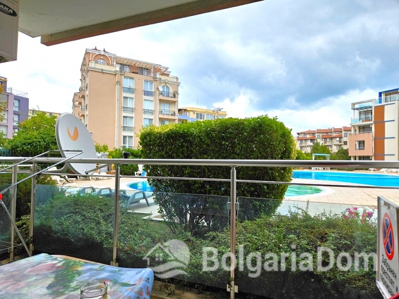Wir bieten ein geräumiges Studio-Apartment mit Poolblick und Abstellraum im Komplex Sun City 1 im südlichen Teil des Ferienortes Sonnenstrand an, ganz in der Nähe des Sandstrands und nur wenige Gehminuten von der Altstadt von Nessebar entfernt. Die Ein-Zimmer-Wohnung mit einer Gesamtfläche von 48,62 m² befindet sich im Hochparterre eines fünfstöckigen Gebäudes. Die Wohnung verfügt über einen Flur, ein großes Zimmer mit Küche in einer separaten, geräumigen Nische mit Fenster, ein Badezimmer und einen großzügigen Balkon mit Poolblick. Die Wohnung wird möbliert und ausgestattet verkauft. Ein 3,40 m² großer Abstellraum in der Tiefgarage ist im Preis inbegriffen. Die gepflegte Anlage des Komplexes Sun City 1 umfasst einen Außenpool mit Kinderbecken, Liege- und Ruhebereich, eine Poolbar und einen Kinderspielplatz. Akt 16. Niedrige Nebenkosten.