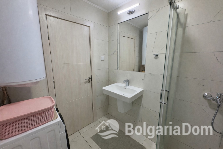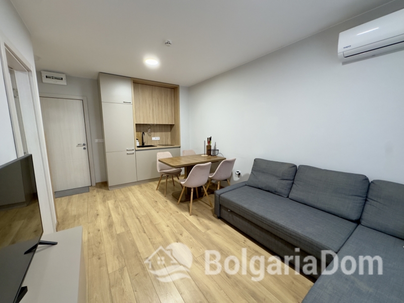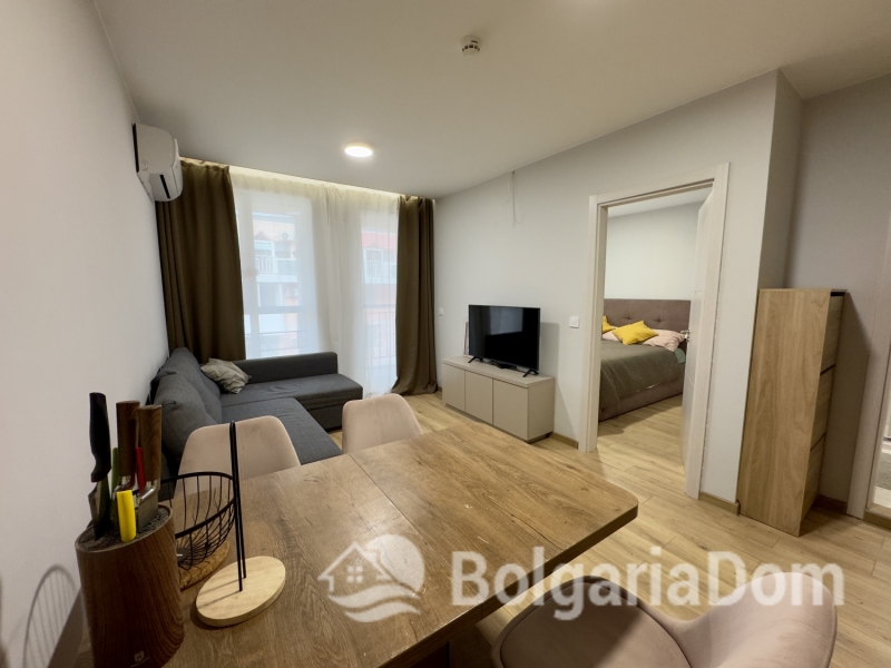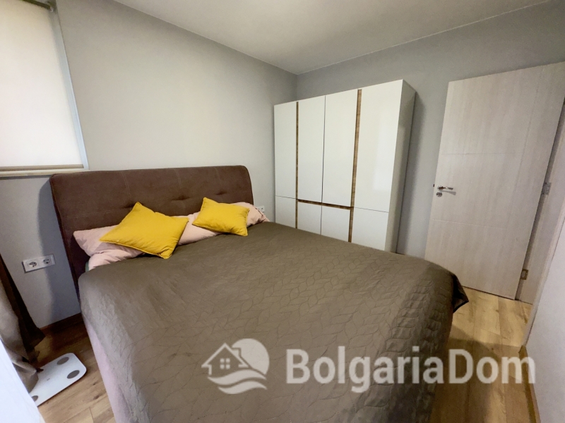 Wir bieten Ihnen eine neue, komplett bezugsfertige 1-Zimmer-Wohnung in einem modernen, hochwertigen Neubaukomplex in ruhiger, grüner Lage in Sunny Beach zum Kauf an. Die Wohnung mit einer Gesamtfläche von 44 m² befindet sich im 5. Stock eines Gebäudes mit Aufzug. Aufteilung: Eingangsbereich, Wohnzimmer mit Küche, Schlafzimmer und Balkon. Die Wohnung wird mit neuen Möbeln und hochwertigen Geräten verkauft und ist stilvoll renoviert. Sie verfügt über moderne Sanitäranlagen und eine Klimaanlage. Diese Wohnanlage mit Zugangskontrolle entspricht den Anforderungen des modernen Immobilienmarktes: garantiert hochwertige Bauweise, Vermietungsmöglichkeiten und eine gepflegte, einladende Anlage. Die Immobilie befindet sich im Herzen des Ferienortes Sunny Beach. Die Gegend ist sehr grün und ruhig, dennoch sind alle notwendigen Einrichtungen und die Infrastruktur (Straßen, Parks, Supermärkte und Apotheken) in unmittelbarer Nähe. Im Westen grenzt das Gelände an eine 7.000 m² große Fläche, die als Stadtpark ausgewiesen ist. Auf dem Gelände stehen Ihnen folgende Annehmlichkeiten zur Verfügung: – ein großer Außenpool, ein Whirlpool, Ruhezonen, eine gepflegte Gartenanlage, ein Café, 24-Stunden-Sicherheitsdienst und Zugangskontrolle, Parkplätze und Fahrradständer.