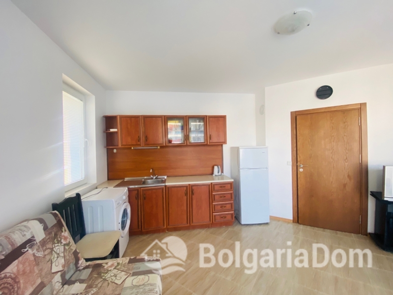 Wir bieten eine geräumige 2-Zimmer-Wohnung in der kleinen Wohnanlage Laguna im ruhigen Norden von Sonnenstrand zum Verkauf an. Die Anlage liegt nur 400 Meter vom Meer entfernt! Der Aquapark ist in 10 Minuten zu Fuß erreichbar, das Stadtzentrum in 15 Minuten. Die Anlage befindet sich in einer gepflegten Gartenanlage mit Pool, Entspannungs- und Liegeflächen, Kinderspielplatz, Restaurant, Café-Bar und Fitnesscenter. Das Gelände ist umzäunt. Sicherheitspersonal und Parkplätze sind vorhanden. Alle wichtigen Einrichtungen wie Geschäfte, Apotheken, Supermärkte, Restaurants, ein Ärztezentrum und Bushaltestellen sind fußläufig erreichbar. Die Altstadt von Nessebar ist 5 km entfernt. Die Anlage eignet sich sowohl für einen saisonalen Urlaub als auch zum ganzjährigen Wohnen. Die Wohnung hat eine Gesamtfläche von 59 m². Sie besteht aus einem Eingangsbereich, einem Wohnzimmer mit Küche, einem Schlafzimmer, einem Badezimmer und einem Balkon mit schönem Blick auf den Pool. Die Wohnung befindet sich im 3. Stock. Günstige Nebenkosten (Act 16). Niedrige Nebenkosten (Act 16).