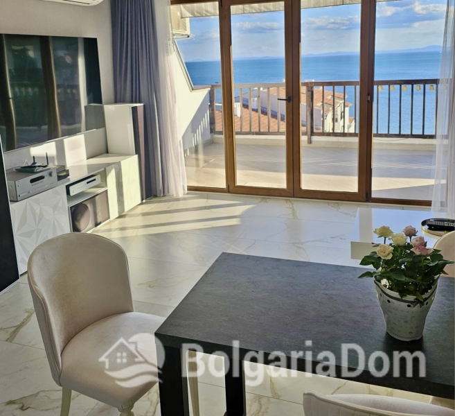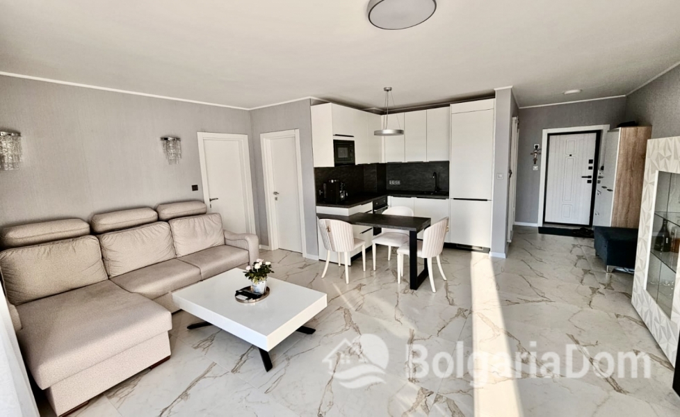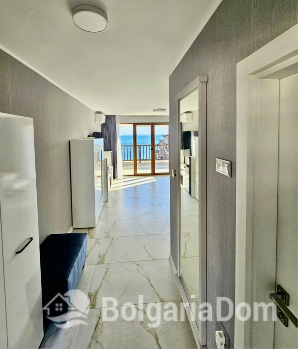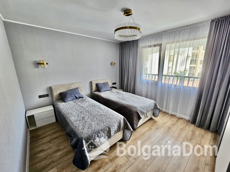 Wir bieten Ihnen eine geräumige 3-Zimmer-Wohnung mit atemberaubendem Meerblick und hochwertiger Renovierung im europäischen Stil im Sun Coast Resort zum Kauf an. Die Wohnung befindet sich in erster Strandreihe! Der Sandstrand ist nur 100 Meter entfernt. Die wunderschöne Promenade erreichen Sie nach 400 Metern. Auch der bekannte Yachthafen Marina Dinevi ist fußläufig erreichbar. Alle notwendigen Supermärkte, Restaurants mit bulgarischer und europäischer Küche sowie Kinderspielplätze befinden sich in unmittelbarer Nähe. Die Anlage selbst bietet einen Außenpool, ein Restaurant, eine Café-Bar sowie Liege- und Entspannungsbereiche. Diese geräumige Wohnung mit 119 m² befindet sich im vierten Stock. Sie wird mit luxuriöser Renovierung, neuen, schönen Möbeln und hochwertigen Geräten zum Verkauf angeboten. Aufteilung: Eingangsbereich, großes Wohnzimmer mit Küche, zwei Schlafzimmer, Balkon mit Bergblick, Balkon mit Panoramablick aufs Meer, zwei Badezimmer. Perfekter Zustand. Nebenkosten inklusive.