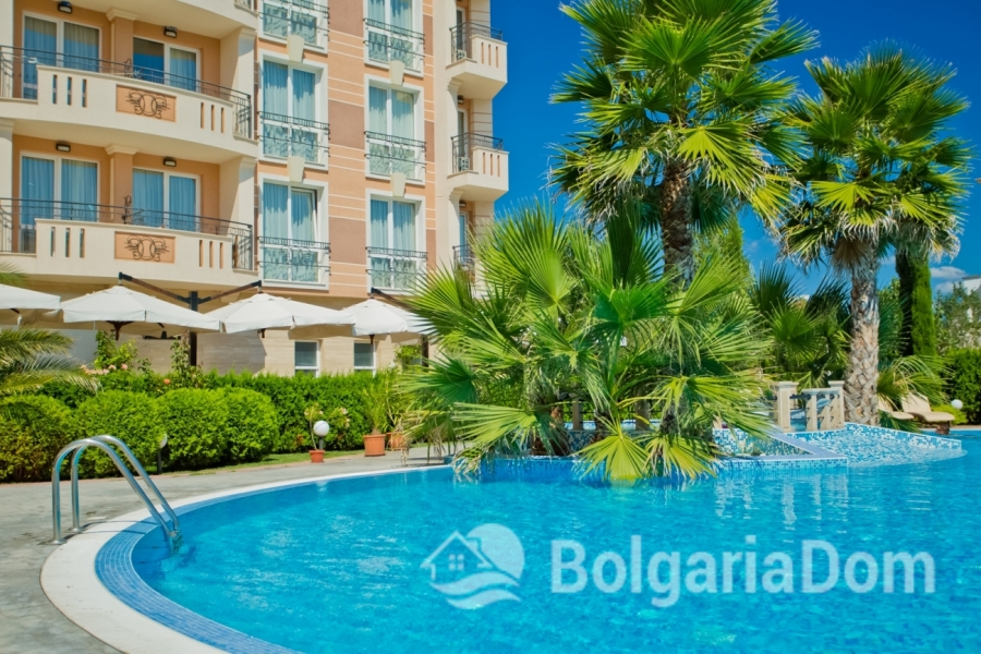 Wir bieten ein gemütliches Studio-Apartment im Aphrodite Palace Komplex zum Kauf an, gelegen in einem der begehrtesten Ferienorte – Sunny Beach. Der Komplex befindet sich im gepflegten und gut erschlossenen Südwesten des Ferienortes. Der Strand ist nur 600 Meter entfernt. Alles, was Sie für einen komfortablen Aufenthalt benötigen, befindet sich in unmittelbarer Nähe: Cafés, Restaurants, Geschäfte, Supermärkte, Unterhaltungsmöglichkeiten und öffentliche Verkehrsmittel. Das 41 m² große Studio-Apartment liegt im 3. Stock eines Gebäudes mit Aufzug. Es verfügt über einen geräumigen Wohnbereich mit Kochnische, ein Badezimmer und einen Balkon. Das Apartment ist komplett möbliert und mit allen Haushaltsgeräten ausgestattet und kann sofort bezogen oder vermietet werden. Der Komplex ist offiziell zugelassen und unterliegt der Verordnung Act 16. Die Nebenkosten werden zu den üblichen Haushaltstarifen abgerechnet.