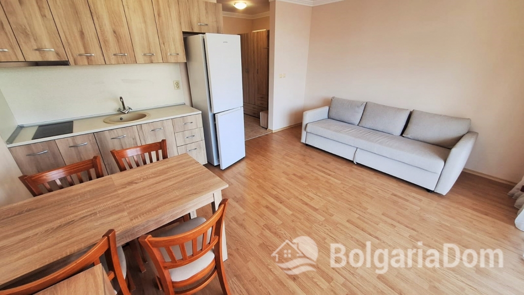 Wir bieten ein neues Studio-Apartment in Sunny Beach im hochwertigen Levsha-Komplex zum Verkauf an. Die Wohnfläche beträgt 42 m² und befindet sich im 5. Stock. Der Komplex liegt im Herzen des Ferienortes Sunny Beach, in unmittelbarer Nähe zum Kuban Hotel/Casino, Restaurants, Geschäften, Banken, Apotheken und einem Wasserpark. Die zentrale Promenade ist nur 2 Minuten entfernt. Der nächste Strand ist 500 Meter vom Komplex entfernt. Das Studio eignet sich sowohl für den Urlaub als auch zum ganzjährigen Wohnen. Das Apartment wird bezugsfertig verkauft – möbliert und ausgestattet! Alles ist in einwandfreiem Zustand! Act 16.