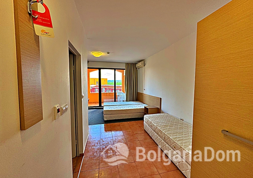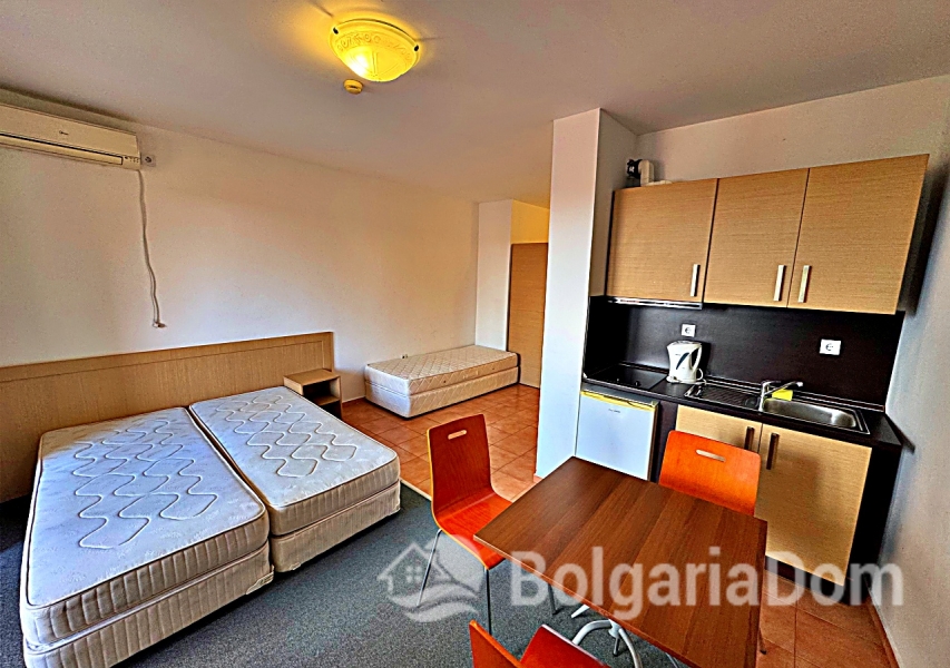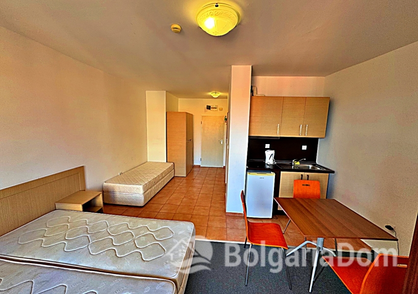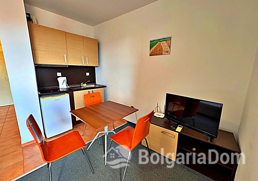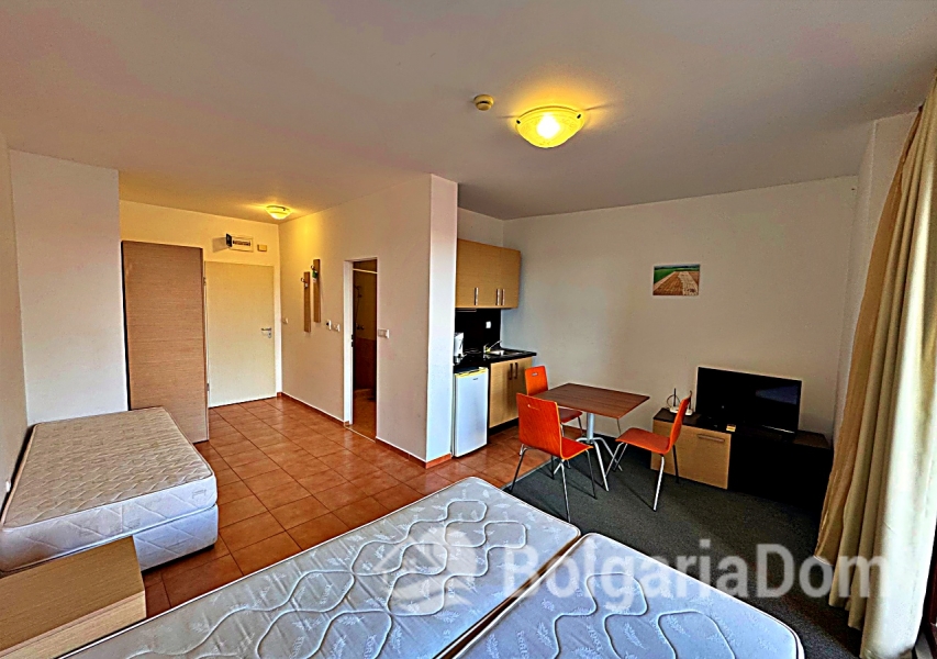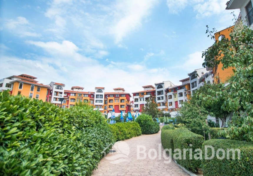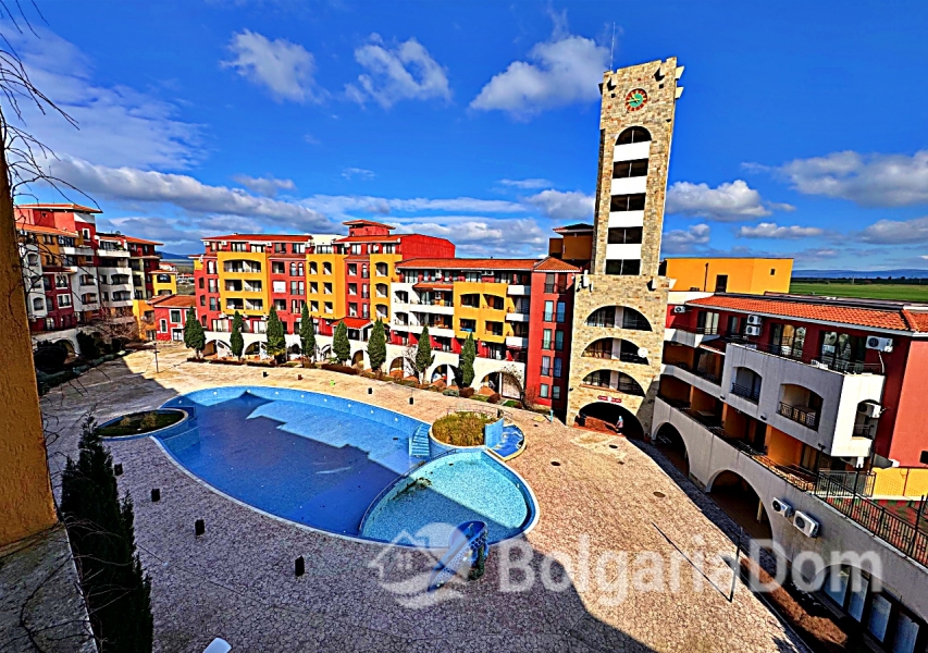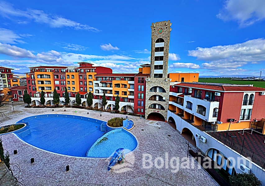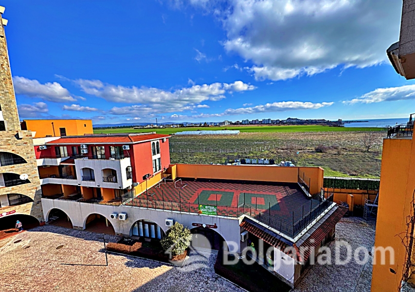 Wir bieten ein geräumiges Studio-Apartment mit Poolblick in der großen Wellnessanlage Marina Cape in Aheloy zum Verkauf an. Das Apartment befindet sich direkt am Strand in der hochwertigen Wohnanlage Marina Cape – in einer malerischen Gegend von Aheloy, nur wenige Fahrminuten von Sonnenstrand, Nessebar und Pomorie und nur 19 km vom Flughafen Burgas entfernt. Die Anlage Marina Cape verfügt über eine gut ausgebaute Infrastruktur und eignet sich ideal zum ganzjährigen Wohnen. Das Zentrum von Aheloy mit seinen ganzjährig geöffneten Geschäften und Restaurants ist fußläufig erreichbar. Zur Ausstattung der Anlage gehören: große Swimmingpools, ein gepflegter Park mit Spazierwegen, Restaurants, Cafés, Volleyballplätze und ein Fußballfeld mit Naturrasen. Über das Apartment: Fläche: 41 m². Die Wohnung befindet sich im 4. Stock eines Gebäudes mit Aufzug. Aufteilung: Eingangsbereich, geräumiges Zimmer mit Kochnische und Schlafbereich, Badezimmer und Balkon mit Sitzgelegenheiten und Blick auf die Anlage und den Pool. Die Wohnung wird möbliert und inklusive Haushaltsgeräten verkauft. Marina Cape ist ideal für Urlaub, als dauerhafter Wohnsitz oder zur Vermietung. Die Anlage ist in Betrieb genommen, die Genehmigung nach Act 16 liegt vor. Niedrige Nebenkosten.
