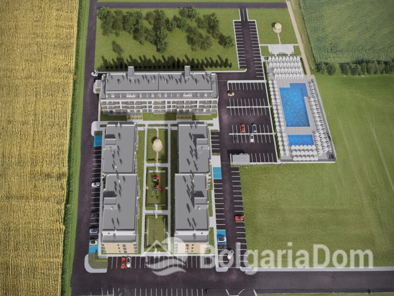 Der Komplex liegt nur 5 Gehminuten vom Zentrum von Aheloy entfernt, wo Sie gemütliche Restaurants, Cafés und Geschäfte finden. Lidl, Technomarket, Pepko und Masterhouse befinden sich in der Nähe, und Ravda, Sonnenstrand, Nessebar, Pomorie und Burgas sind nur eine kurze Autofahrt entfernt. Der Flughafen Burgas ist nur 19 km entfernt, was die Lage für Touristen und Investoren äußerst günstig macht.