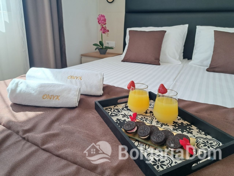 Wir bieten Ihnen eine wunderschöne Wohnung im luxuriösen Onyx-Komplex zum Kauf an, nur 20 Meter vom Meer entfernt, in der Nähe des Ferienortes Sveti Vlas. Der Komplex besticht durch seine einzigartige Lage und bietet eine unvergleichliche Kombination aus Meerblick, den majestätischen grünen Hügeln des Balkangebirges, einer angenehmen Atmosphäre, Komfort und Ruhe. Das besondere mediterrane Klima von Sveti Vlas, eine einzigartige Mischung aus Berg- und Meeresluft, sorgt für reine Luft und ist somit ganzjährig wohltuend für die Atemwege. Dies trägt maßgeblich zu Ihrem Wohlbefinden während Ihres Urlaubs bei. Der Komplex verfügt über ein Restaurant, ein Spa, einen Sicherheitsdienst und eine Rezeption. Ein Swimmingpool mit Ruhezonen, Liegestühlen und Sonnenschirmen lädt zum Entspannen ein. Die 52 Quadratmeter große Wohnung befindet sich im zweiten Stock eines siebenstöckigen Gebäudes mit Aufzug. Sie wird möbliert und ausgestattet verkauft. Act 16.