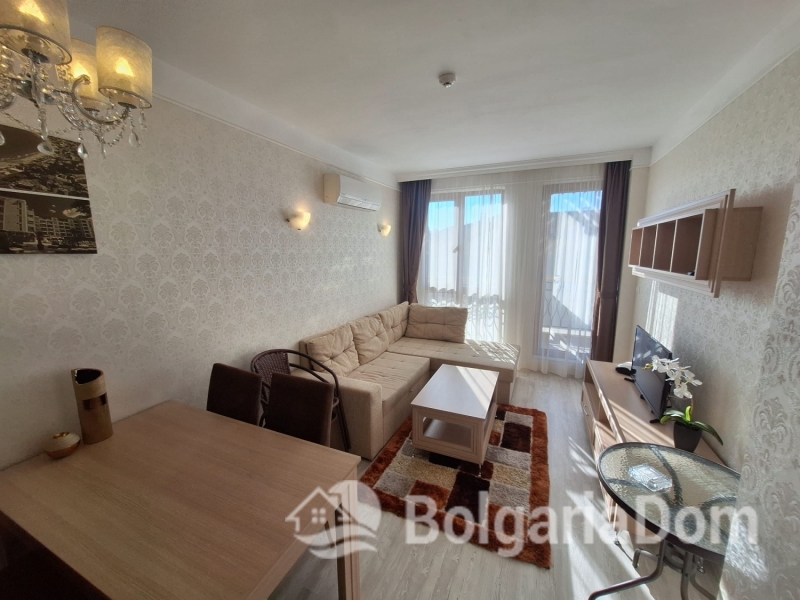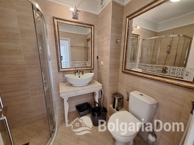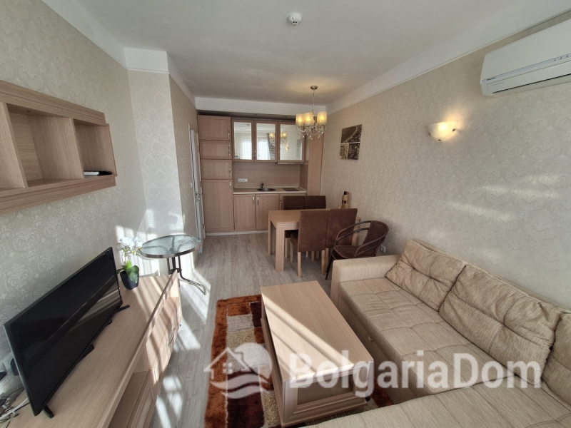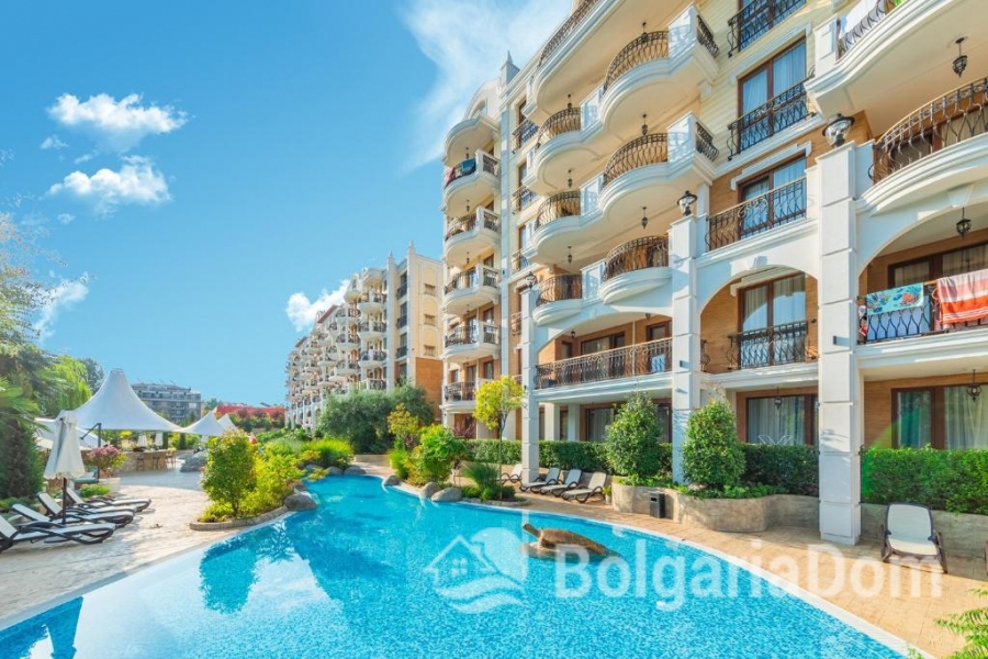 Wir bieten Ihnen eine wunderschöne Wohnung im neuen Premium-Komplex Harmony Grand Resort in Sunny Beach zum Kauf an. Der exklusive Wohnkomplex Harmony Suites Grand Resort bietet Ihnen: - Einen herrlichen Park mit zahlreichen Spielmöglichkeiten für Kinder und Spazierwegen im Grünen. - Fünf Swimmingpools, darunter ein Kinderbecken und ein beheizter Pool. - Pavillons zum Entspannen und ein Grillplatz. - Ein Sommerrestaurant mit Bar. - Parkplätze. - Eine Rezeption. - Eine Brandmeldeanlage und 24-Stunden-Sicherheitsdienst mit Videoüberwachung. Die Wohnung ist 48 m² groß und befindet sich im 6. Stock eines Gebäudes mit Aufzug. Sie wird möbliert und inklusive Haushaltsgeräten verkauft. Es ist in ausgezeichnetem Zustand.
