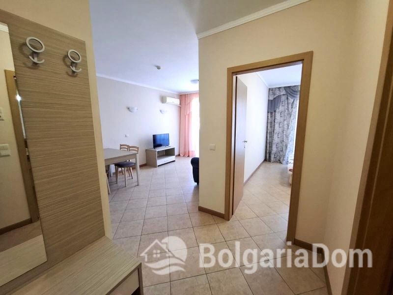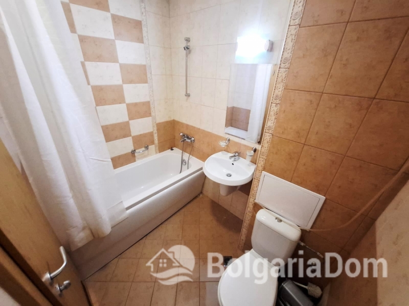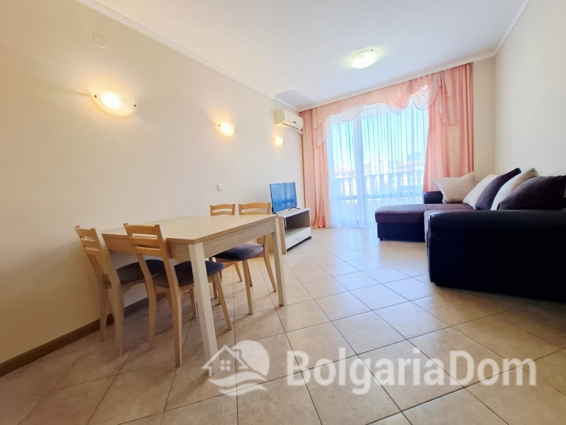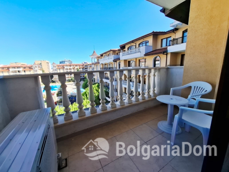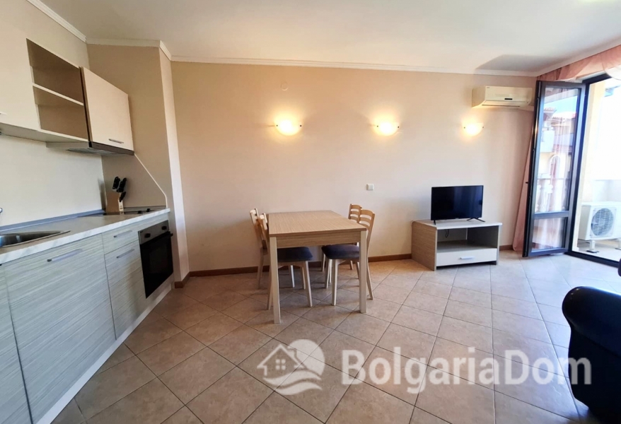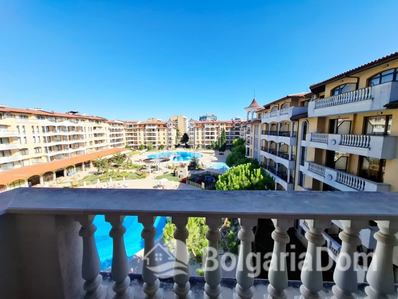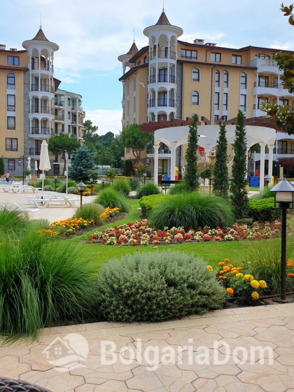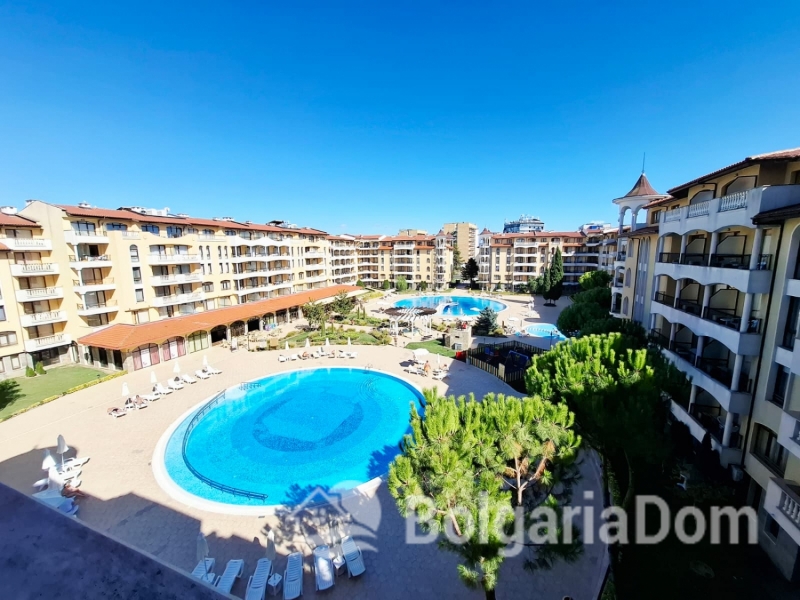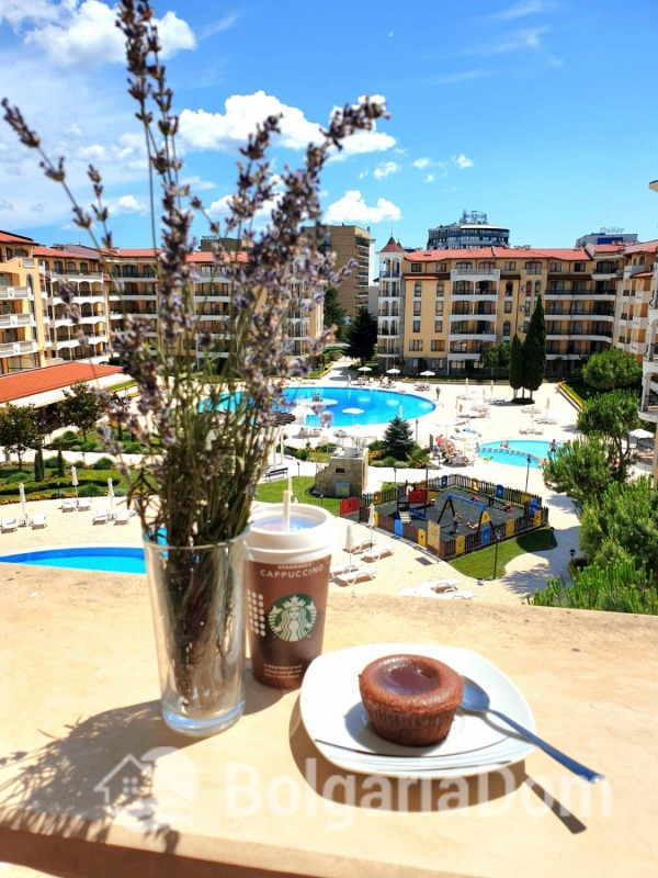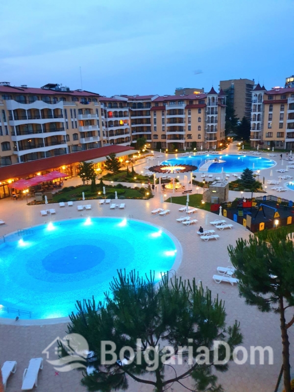 Wir bieten eine wunderschöne Zwei-Zimmer-Wohnung im großzügigen Royal Sun-Komplex im südlichen Teil von Sonnenstrand zum Verkauf an. Royal Sun ist eine große, abgeschlossene Wohnanlage im westlichen Teil von Sonnenstrand. Perfekte Lage. Die Anlage ist 400 Meter von den Sandstränden entfernt. Alle wichtigen Annehmlichkeiten für Entspannung und Alltag sind fußläufig erreichbar. Diese Zwei-Zimmer-Wohnung hat eine Gesamtfläche von 56,23 m². Sie befindet sich im 5. Stock eines sechsstöckigen Gebäudes mit Aufzug. Sie ist möbliert und ausgestattet. Bezugsfertig. Das Grundstück der Anlage ist großzügig – 10.000 m² – und eingezäunt. Es verfügt über zwei große Swimmingpools, ein ausgezeichnetes Restaurant, ein Spa, ein Fitnesscenter, einen Massageraum, einen Whirlpool, ein Solarium, einen Kinderspielplatz und ein Unterhaltungsprogramm, ein Einkaufszentrum, ein Ärztezentrum und einen Supermarkt. Ganzjähriger Sicherheitsdienst, Videoüberwachung und Parkplätze stehen zur Verfügung.