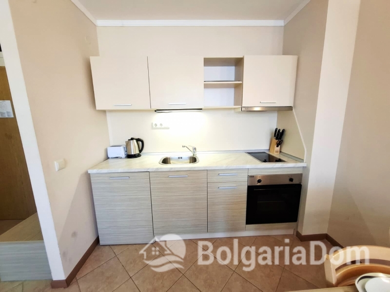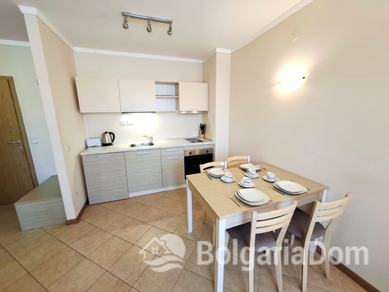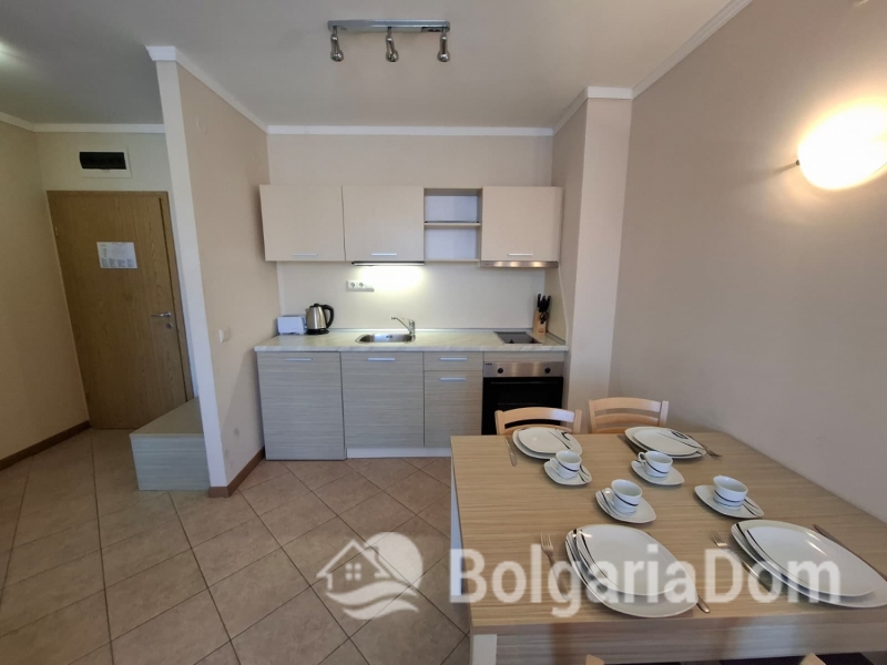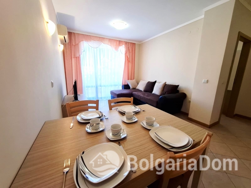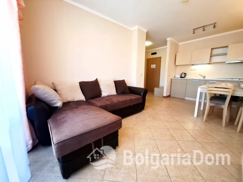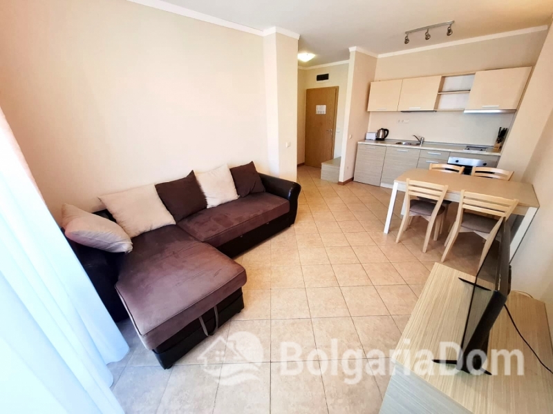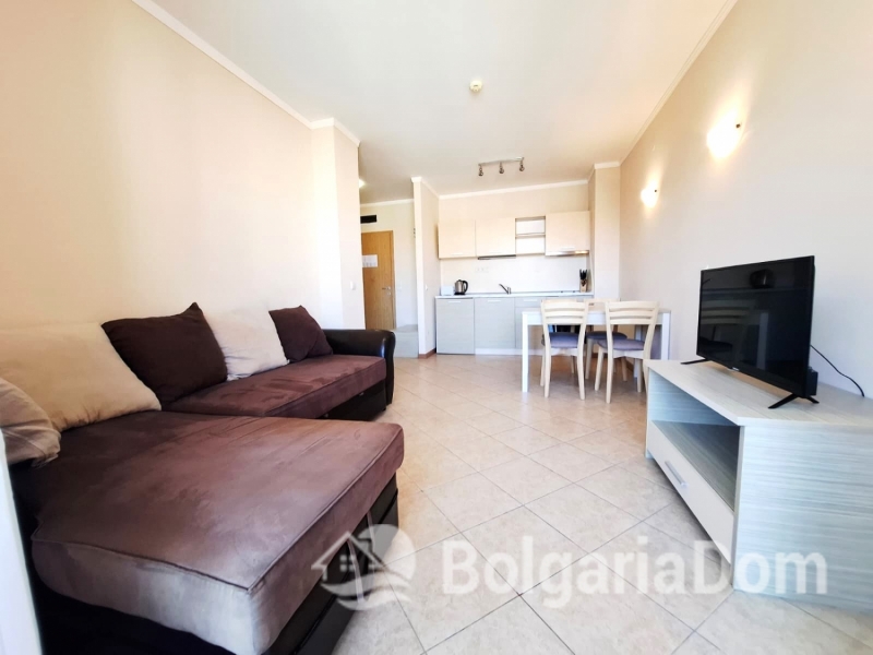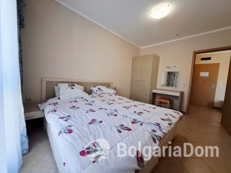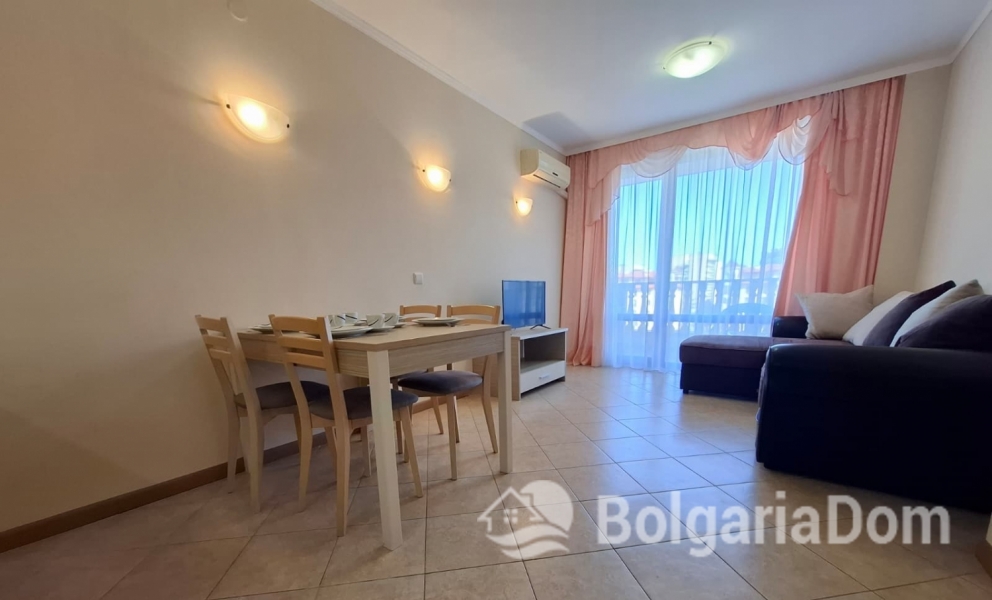 Wir bieten eine wunderschöne Zwei-Zimmer-Wohnung im großzügigen Royal Sun-Komplex im südlichen Teil von Sonnenstrand zum Verkauf an. Royal Sun ist eine große, abgeschlossene Wohnanlage im westlichen Teil von Sonnenstrand. Perfekte Lage. Die Anlage ist 400 Meter von den Sandstränden entfernt. Alle wichtigen Annehmlichkeiten für Entspannung und Alltag sind fußläufig erreichbar. Diese Zwei-Zimmer-Wohnung hat eine Gesamtfläche von 56,23 m². Sie befindet sich im 5. Stock eines sechsstöckigen Gebäudes mit Aufzug. Sie ist möbliert und ausgestattet. Bezugsfertig. Das Grundstück der Anlage ist großzügig – 10.000 m² – und eingezäunt. Es verfügt über zwei große Swimmingpools, ein ausgezeichnetes Restaurant, ein Spa, ein Fitnesscenter, einen Massageraum, einen Whirlpool, ein Solarium, einen Kinderspielplatz und ein Unterhaltungsprogramm, ein Einkaufszentrum, ein Ärztezentrum und einen Supermarkt. Ganzjähriger Sicherheitsdienst, Videoüberwachung und Parkplätze stehen zur Verfügung.