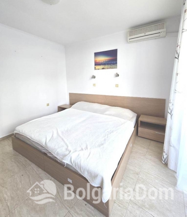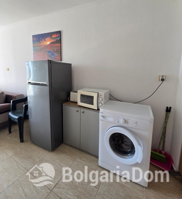 Wir bieten Ihnen eine gemütliche Zweizimmerwohnung im Diamond-Komplex an. Diamond ist eine prächtige Wohnanlage direkt am Strand im Ferienort Sveti Vlas. In bester Lage gelegen, ist sie vom Strand und dem eleganten Yachthafen Marina Dinevi umgeben. Alle Annehmlichkeiten des Ferienortes befinden sich in unmittelbarer Nähe, darunter gemütliche Cafés, stilvolle Boutiquen, Bars, Restaurants und Clubs. Die weitläufige Parkanlage der Anlage erstreckt sich über 20.000 Quadratmeter und bietet einen Außenpool für Erwachsene und ein separates Kinderbecken, einen gepflegten Spielplatz, ein Restaurant, ein Fitnesscenter, einen Schönheitssalon und eine gemütliche Bar. Sicherheitspersonal und Parkplätze sind vorhanden. Diese Zweizimmerwohnung hat eine Wohnfläche von 65 m². Aufteilung: Eingangsbereich, Wohnzimmer mit Küche und Essbereich, separates Schlafzimmer, Badezimmer, Terrasse. Die Wohnung befindet sich im Erdgeschoss und ist möbliert. In gutem Zustand.