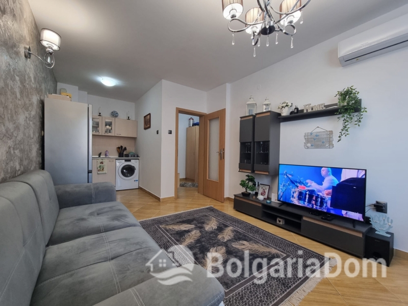 Wir bieten eine gemütliche und funktionale Zweizimmerwohnung im beliebten Wohnkomplex Golden Dreams in Sunny Beach zum Verkauf an. Die Anlage liegt nur 600 Meter vom Meer entfernt und in unmittelbarer Nähe zum Ortszentrum. Dadurch eignet sie sich ideal sowohl für Ferienvermietung als auch zum ganzjährigen Wohnen. Ausstattung und Einrichtungen der Anlage: Swimmingpool Kinderspielplatz Fitnessbereich Restaurant und Bar Entspannungs- und Unterhaltungsbereiche Geschäft vor Ort 24-Stunden-Sicherheitsdienst und Videoüberwachung Wohnungsdetails: Gesamtfläche: 65,8 m² Etage: 2. OG Aufteilung: Eingangsbereich, gemütliches Wohnzimmer mit Küchenzeile, Schlafzimmer, Badezimmer mit Dusche Terrasse mit Blick auf den Pool Die Wohnung ist komplett möbliert und ausgestattet mit Ausstattung. Bezugsfertig oder zur Vermietung geeignet. Zusätzliche Informationen: Instandhaltungskosten: 9 €/m² pro Jahr. Eine hervorragende Option für einen komfortablen Urlaub am Meer oder als Kapitalanlage mit Vermietungspotenzial.