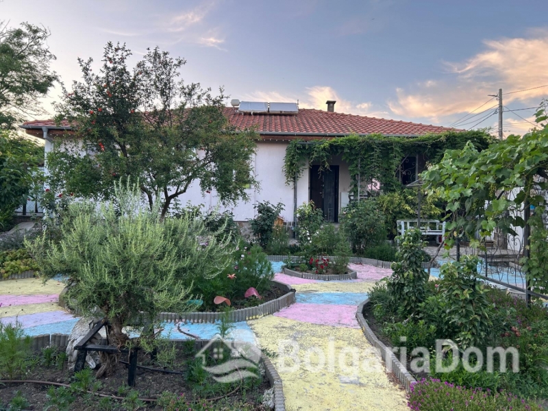 Предлагаем на продажу дом с тремя спальнями и ухоженной красивой приусадебной территорией в поселке Каменар, расположенном в 6 км от бальнеокурорта Поморие.