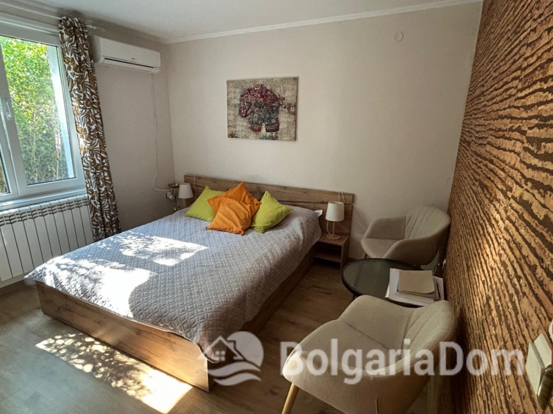 Дом расположен в 5 км от моря в экологически чистом месте. Регулярно ходит автобус, есть освещенная велосипедная дорожка до Поморие. В 600 метрах от дома находится минеральный источник. В окрестностях есть 2 магазина и 3 кафе. Расстояние до Бургаса составляет 15 км.