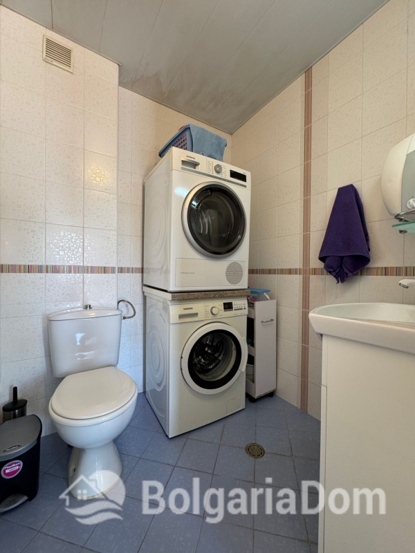 Дом оборудован бытовой техникой и кондиционерами. При продаже остаётся часть мебели, техники и текстиля. Подключены центральные коммуникации: электричество, водоснабжение и канализация.