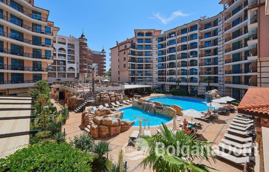 The "Karolina" complex is located in the southern part of Sunny Beach, just a few minutes' walk from Cacao Beach and in close proximity to the historical town of Nessebar. The location of the complex makes it ideal for those looking for a combination of natural beauty and rich infrastructure. Near the complex you can find sports facilities, tennis courts, a football field, shops, cafes, bars, pharmacies, a medical center, an aqua park and much more.