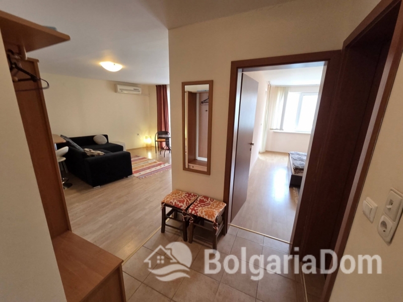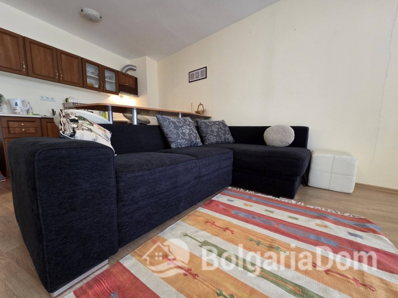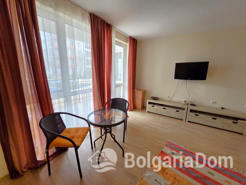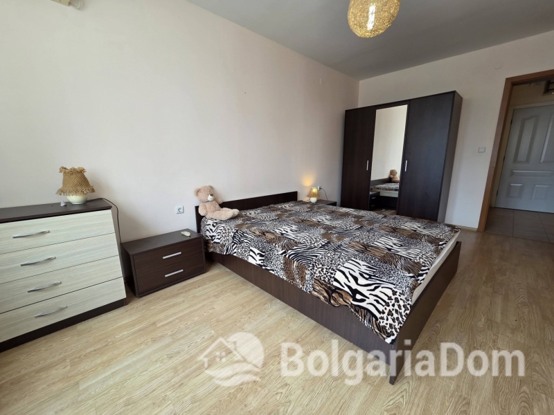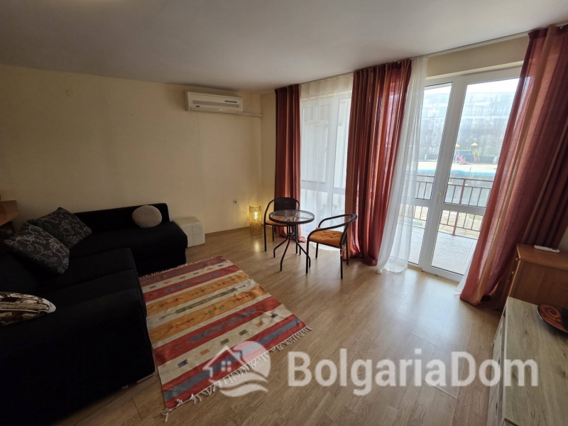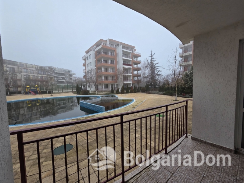 We offer for sale a spacious two-bedroom apartment with a pool view on the first line, in the Riviera Fort complex, Ravda resort.