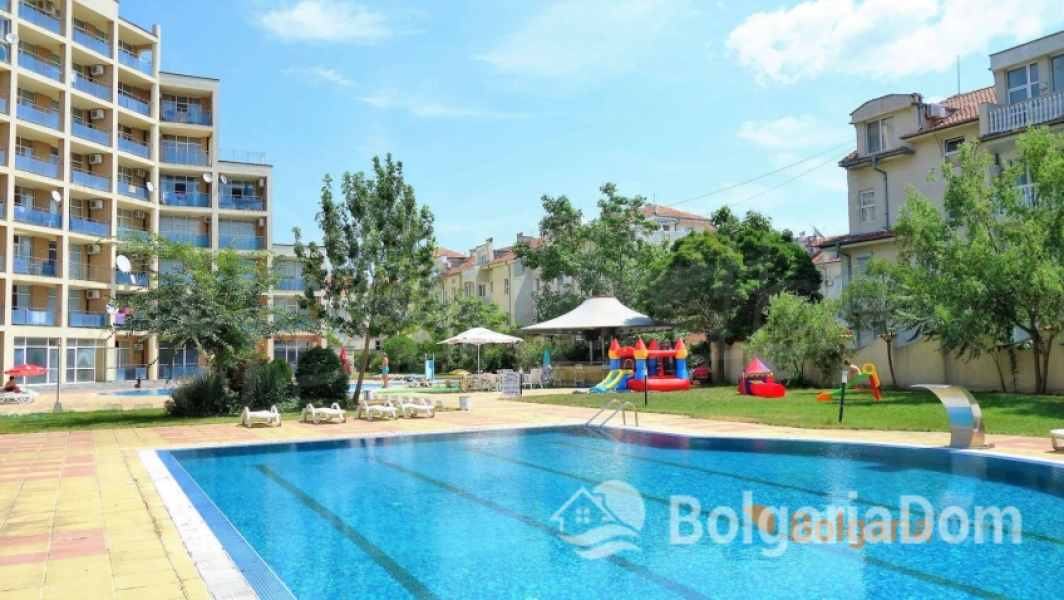 We offer for sale a two-bedroom apartment in the Semiramida Gardens residential complex, Sunny Beach.