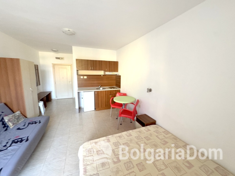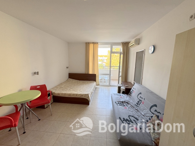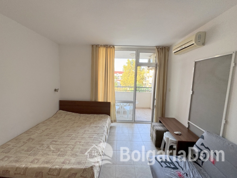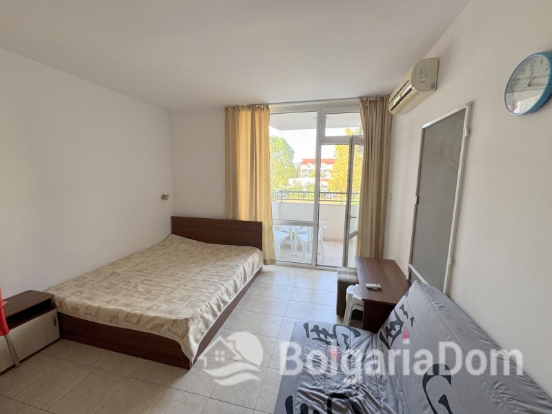 We offer for sale a large studio apartment located in a small, secure complex in Sunny Beach.