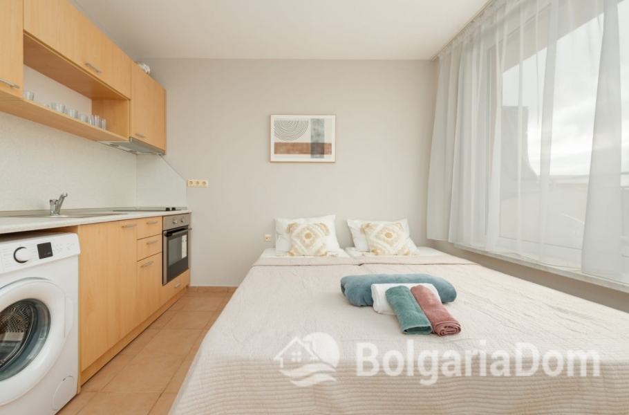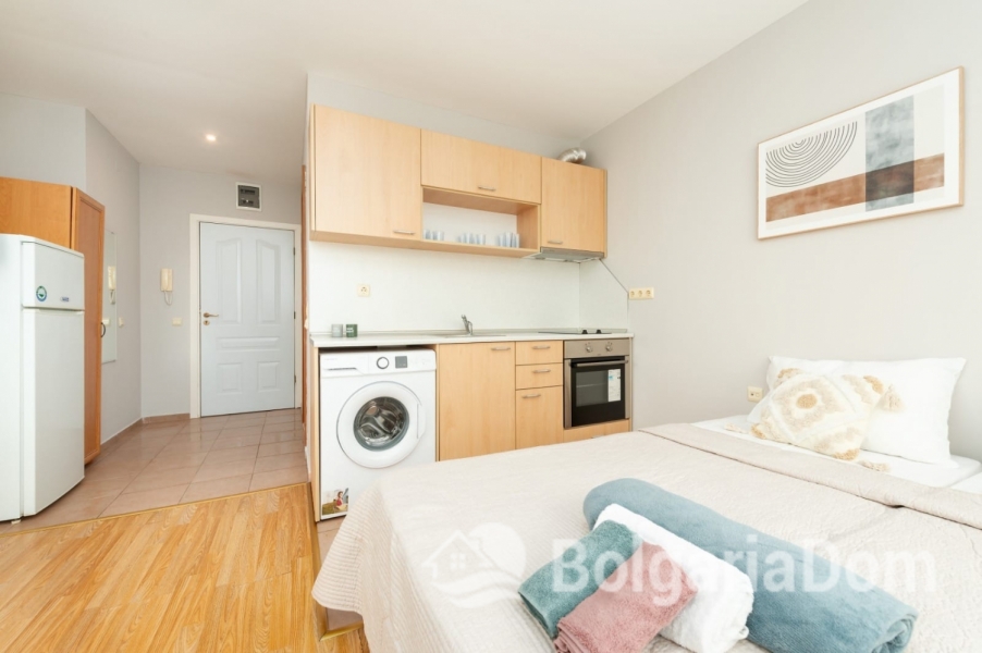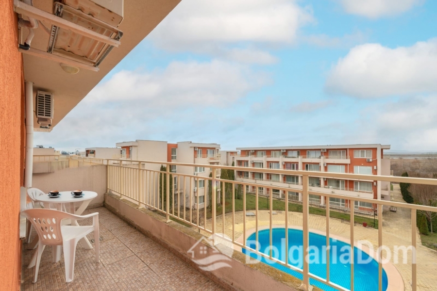 We offer for sale an excellent studio apartment in the popular Nessebar Fort Golf Club residential complex, located in the western part of Sunny Beach. The complex boasts extensive, well-maintained, and green grounds, creating a comfortable and tranquil atmosphere for living and relaxing.