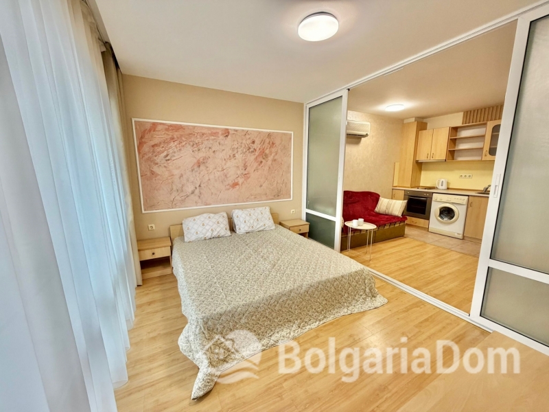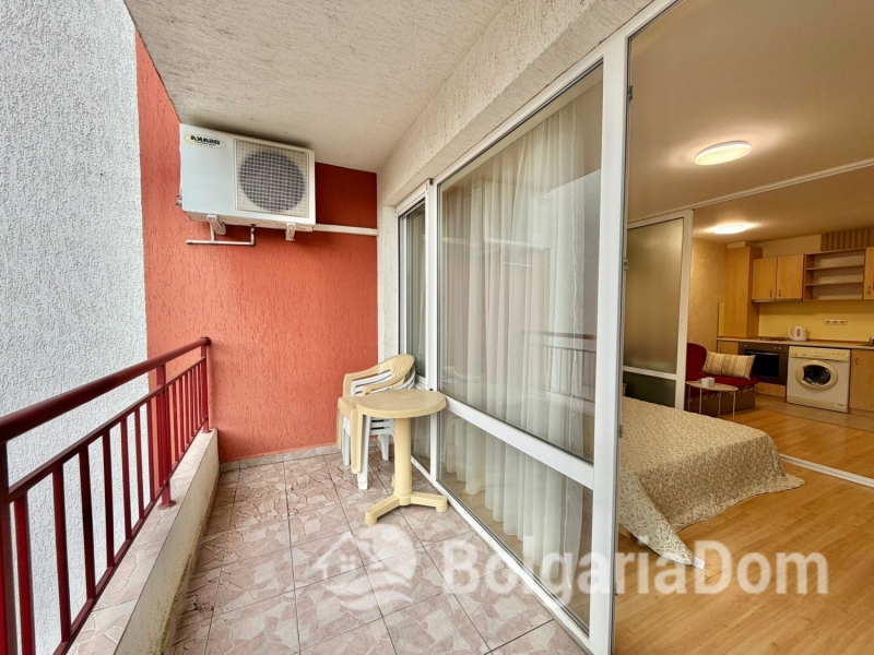 The complex features a green, landscaped area with a variety of amenities: several outdoor swimming pools with sections for children; playgrounds; restaurants serving Bulgarian and European cuisine; supermarket; reception; medical center; sports grounds for football, volleyball, and basketball; tennis courts; car rental. Security. Parking.
