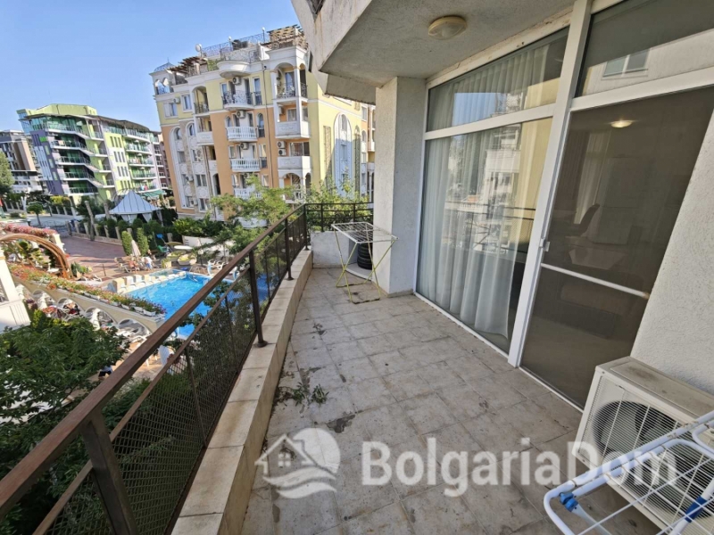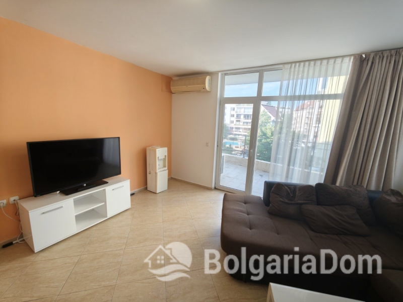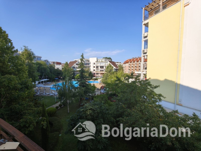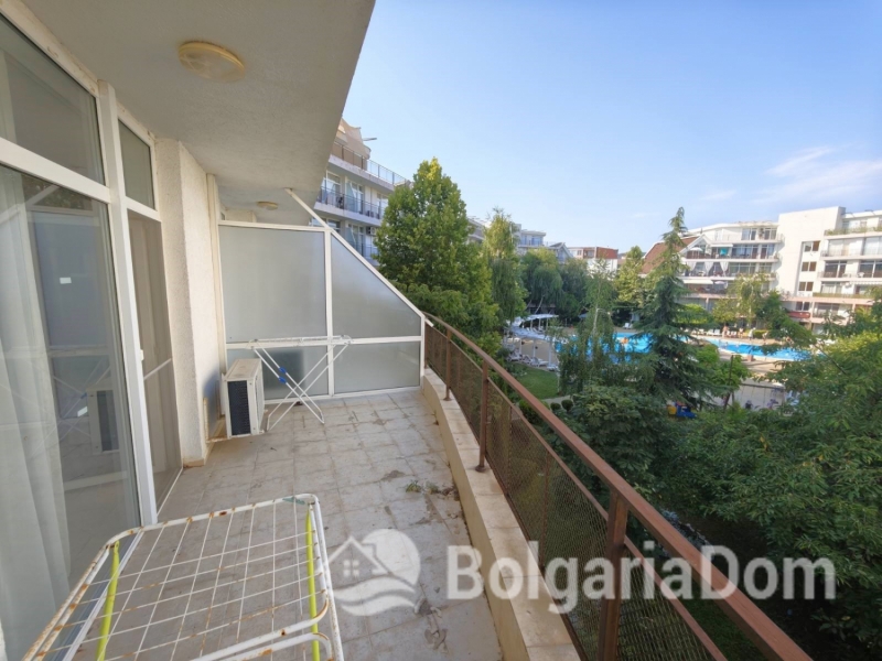 We offer for sale a beautiful and spacious three-bedroom apartment with a pool view in the Sun Village complex, Sunny Beach.