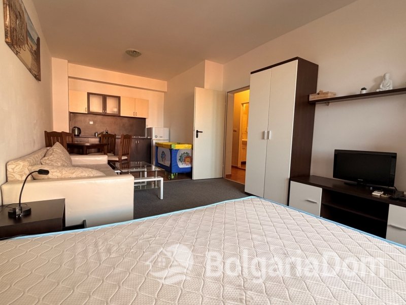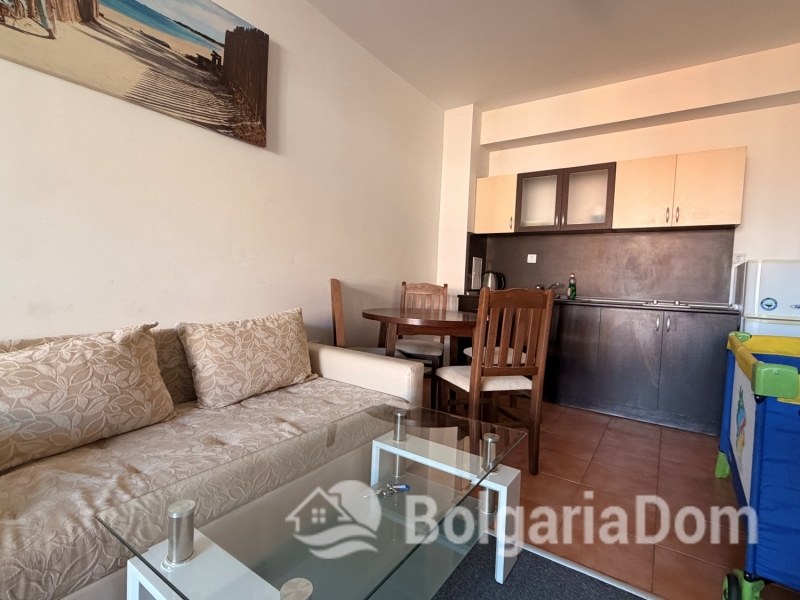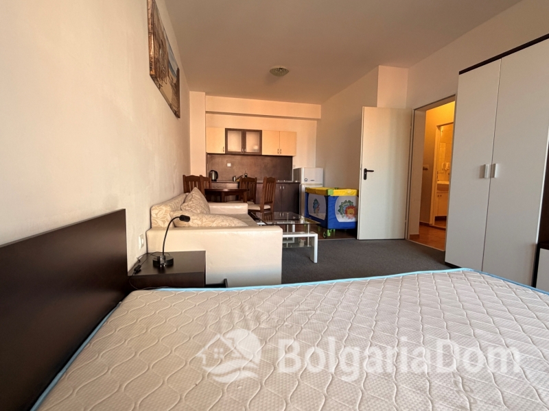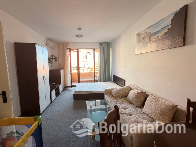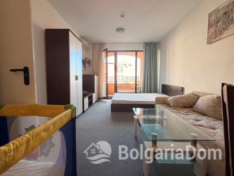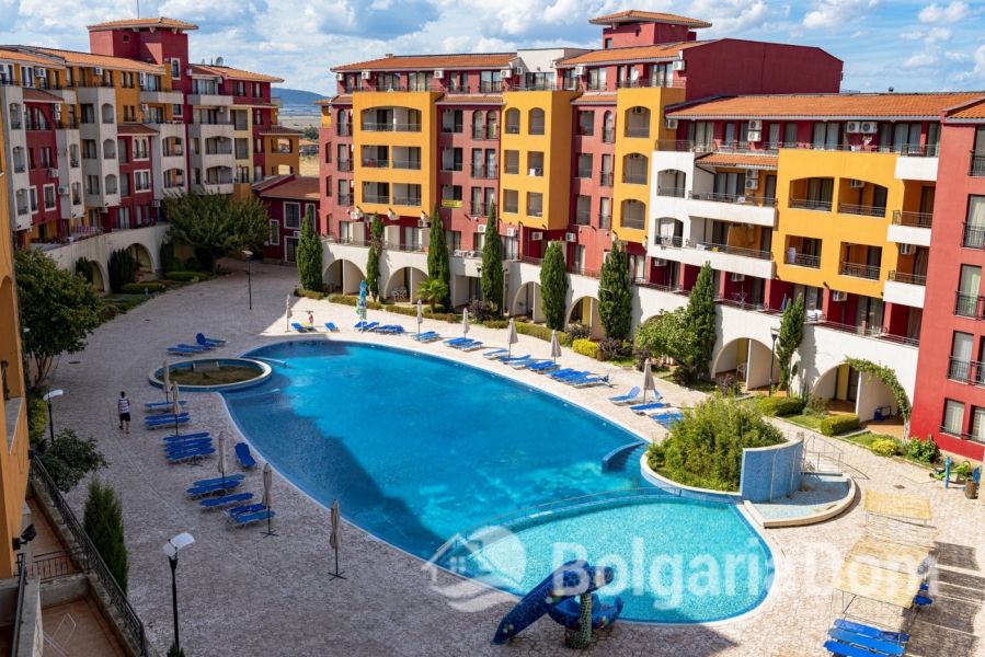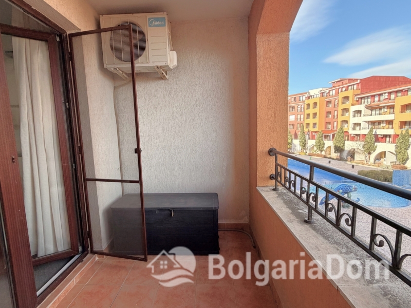We offer for sale a spacious studio apartment with a pool view in a large waterfront spa complex – Marina Cape, Aheloy.