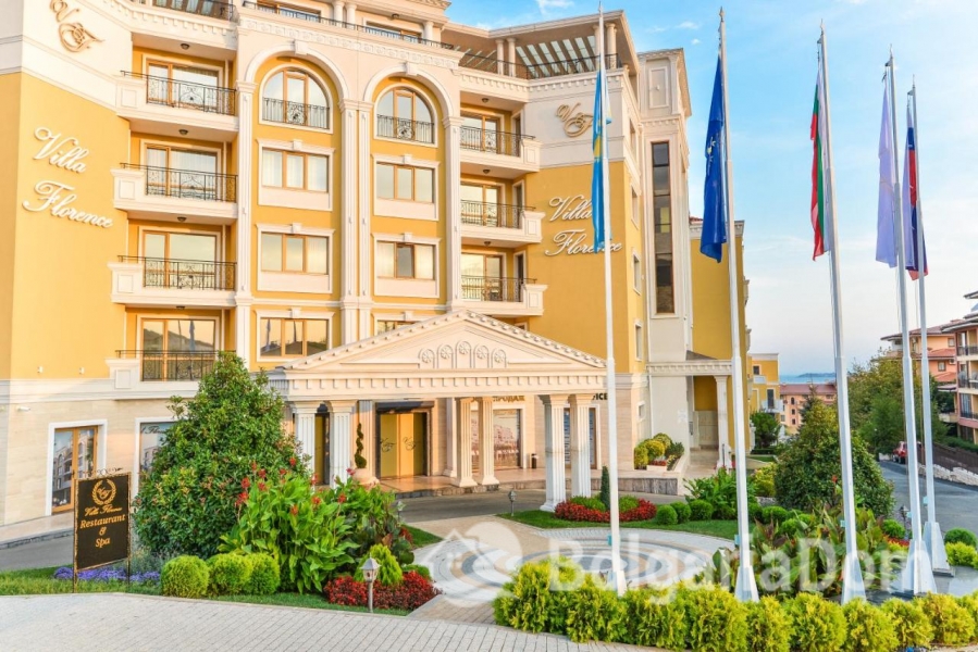 "Villa Florence" is a magnificent residential complex with all amenities, located in a quiet, picturesque location in the Bulgarian resort town of Sveti Vlas, just 400 meters from the sea and sandy beach, 1.5 km from the Marina Dinevi yacht harbor, and 1 km from the world-famous Sunny Beach resort. All necessary amenities are within walking distance: shops, banks, restaurants, playgrounds, a beautiful promenade, a bus stop, and more. Yacht charters are always available for boat trips.