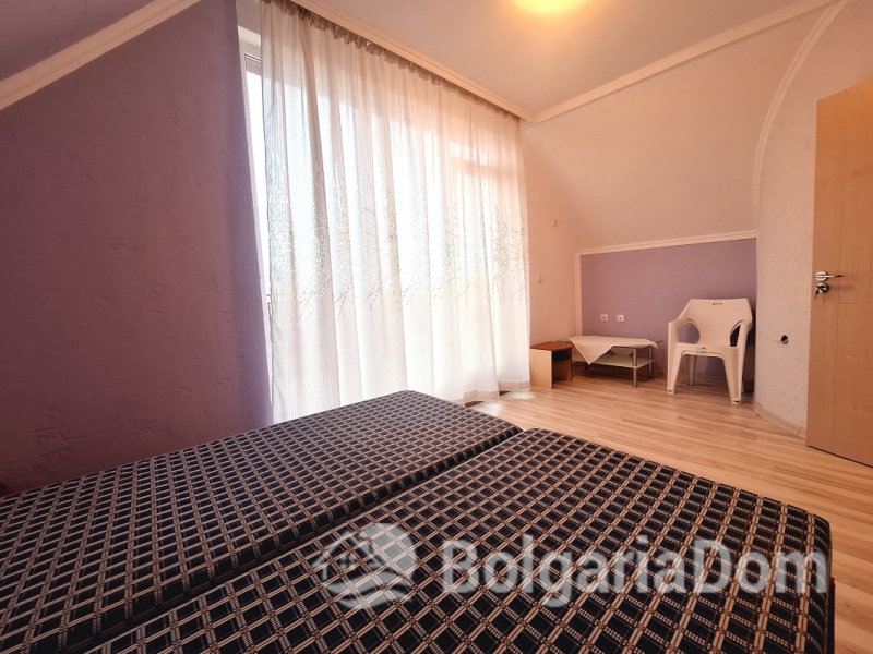 Located on the 4th top floor, the apartment is 149 sq.m. Panoramic views, excellent location. Everything is close by. A wonderful place to live and relax – the promenade runs along the entire length of Ravda, clean beaches, a variety of cafes and restaurants, and places to entertain children. Bus connections to Burgas, Varna, and nearby resorts are available. Lidl and Janet supermarkets, open year-round, are a couple of kilometers away.