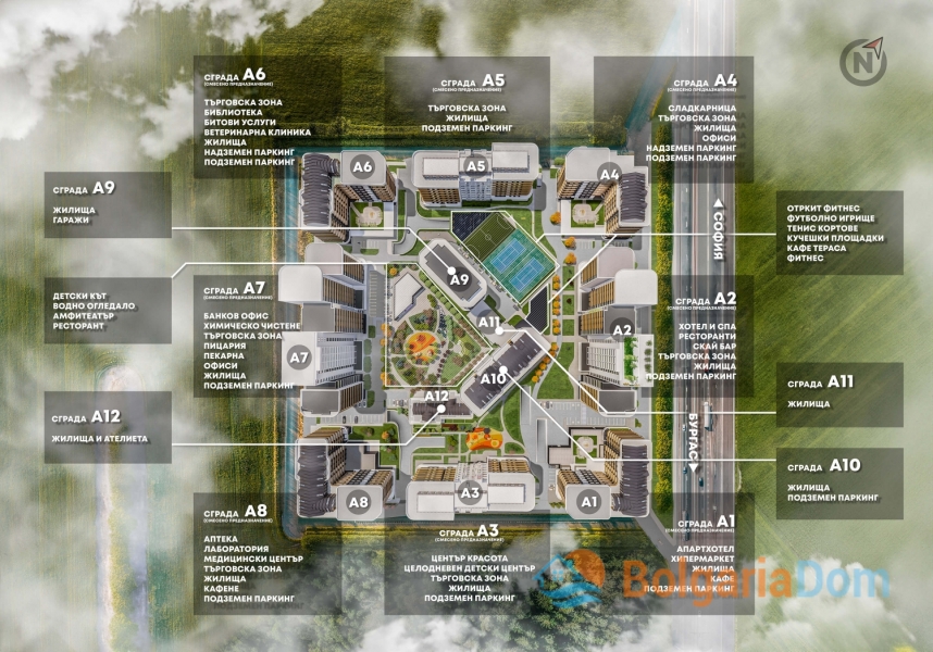Azimuth is a large-scale next-generation residential district designed to create a complete urban environment in one of the most promising areas of Burgas. The project is focused on comfortable permanent living and combines modern architecture, developed infrastructure, and functional solutions for everyday life.