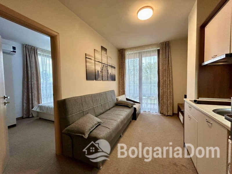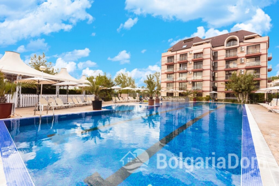 A two-bedroom apartment is available for sale in the Tarsis Club and SPA complex. This is the southwestern part of the resort, 500 meters from the beach.