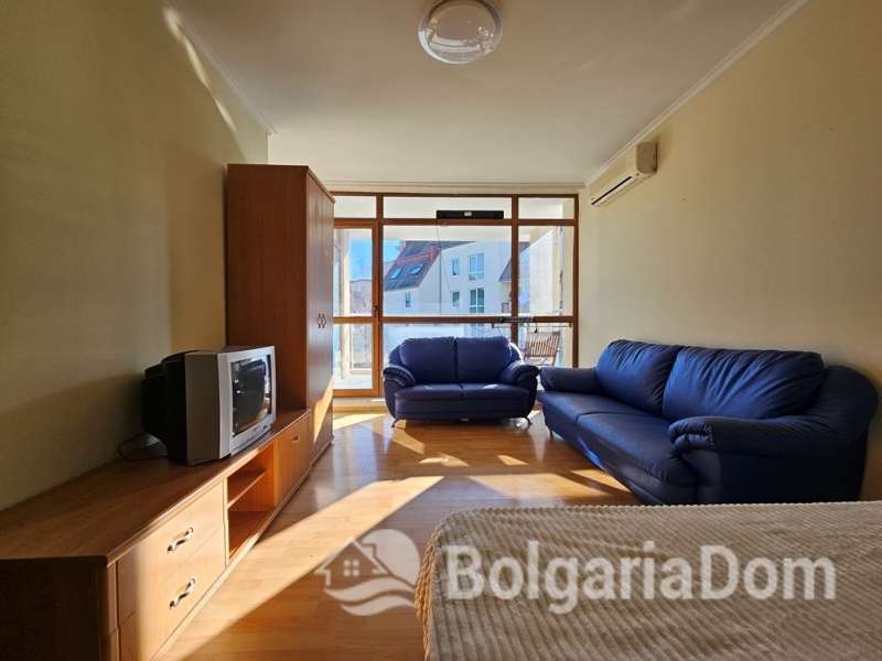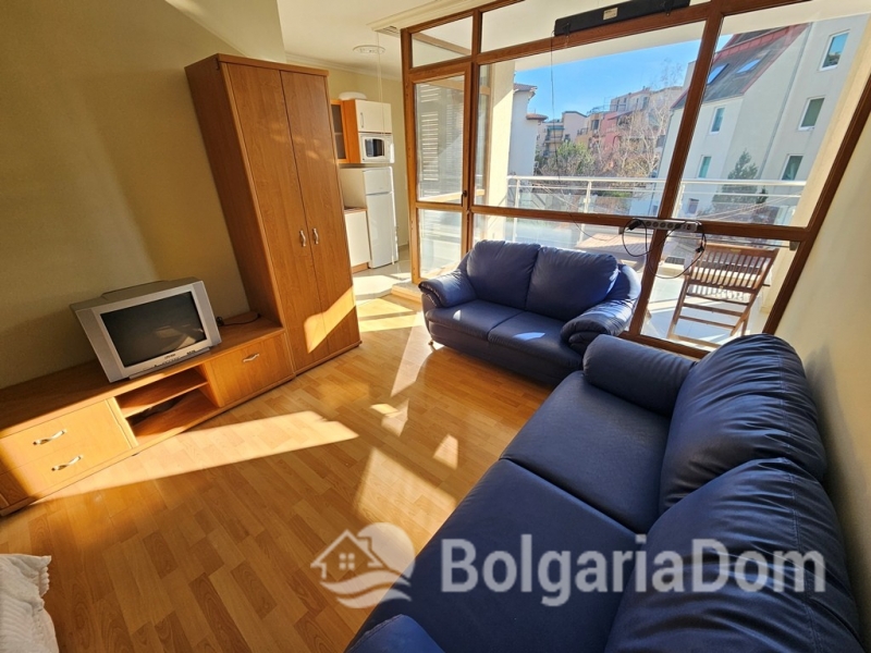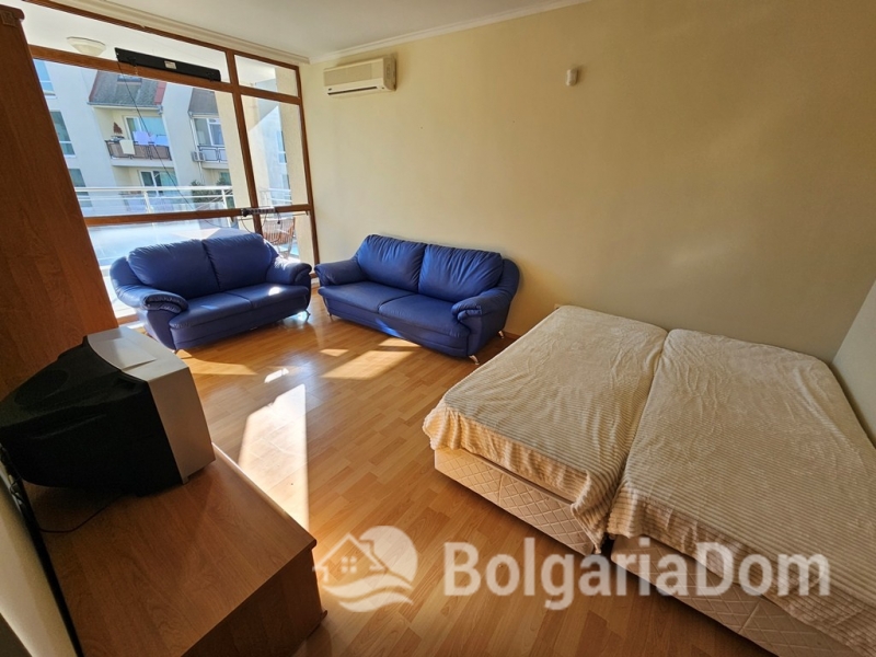 A spacious studio apartment on the ground floor of the "Sun City 1" residential complex in Sunny Beach is available for sale on the resale market.