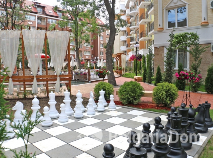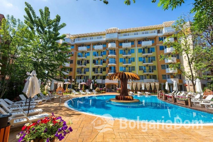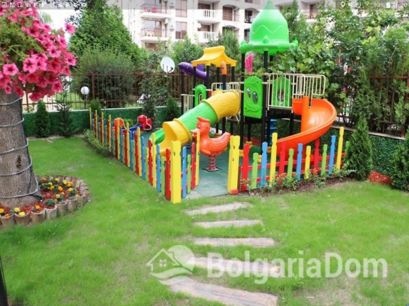 The Sweet Homes 4 complex is located in a quiet, green area of Sunny Beach, just a 7-10-minute walk from the beach. This modern building features well-maintained grounds, 24-hour security, and video surveillance. Residents have access to an outdoor pool with a waterfall, a separate children's pool, cozy relaxation areas with gazebos and barbecue, a playground, and a spa. The building has an elevator and a reception desk. The complex is ideal for both summer vacations and comfortable year-round living.