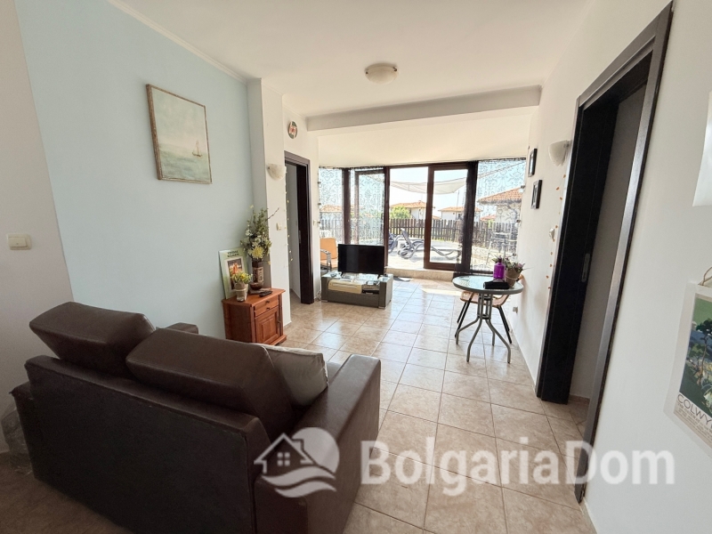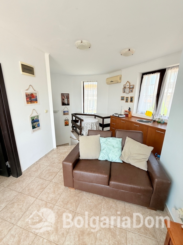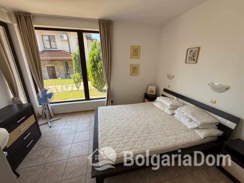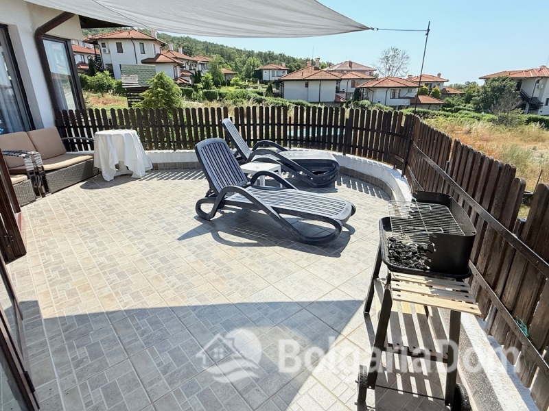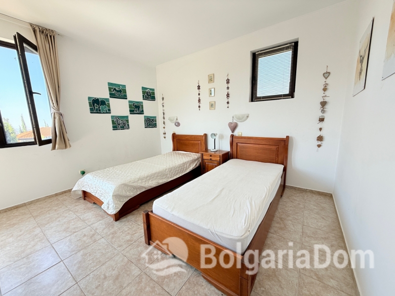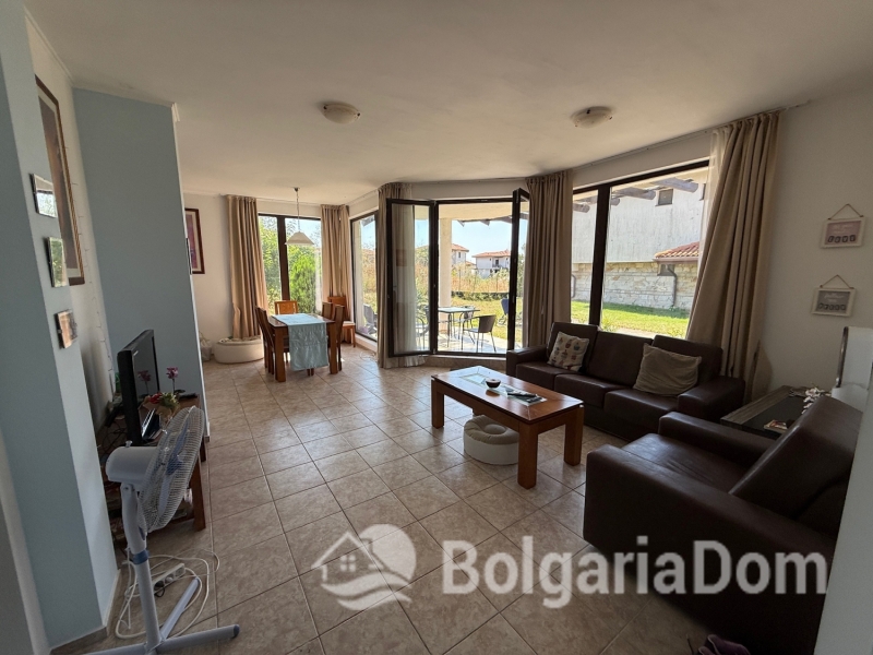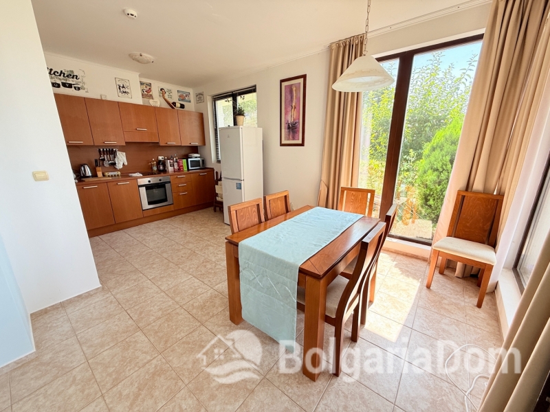 Предлагаем на продажу просторный таунхаус с тремя спальнями и с террасой в большом благоустроенном комплексе Бей Вью Виллас, расположенном в местности Чолакова Чешма, в зоне коттеджных поселков возле курорта Солнечный Береги и поселка Кошарица.