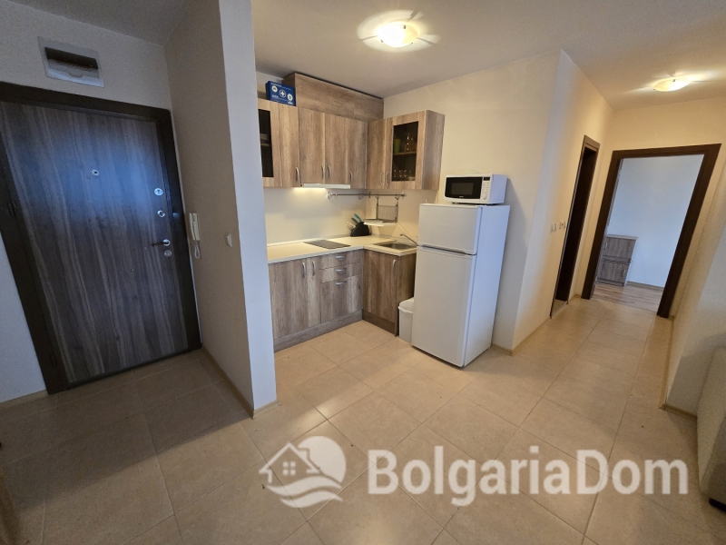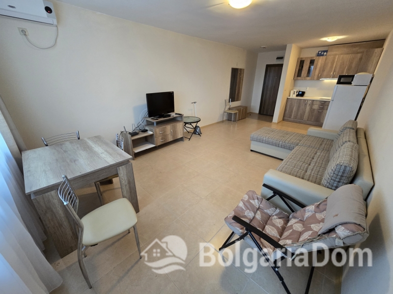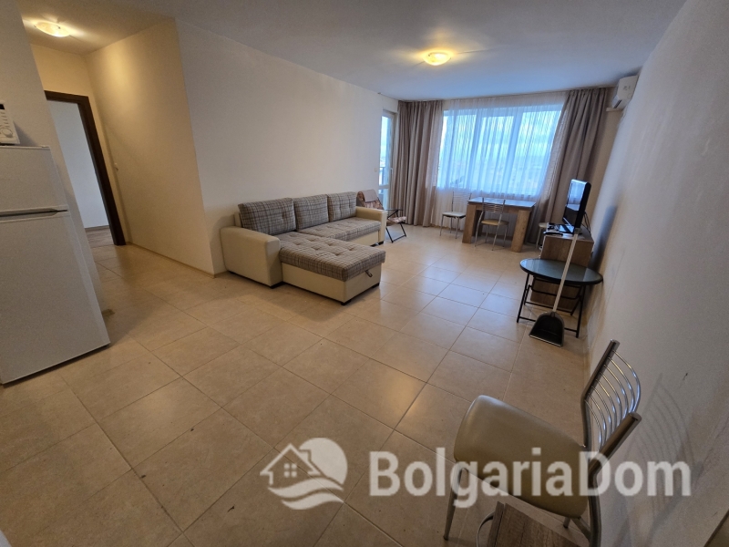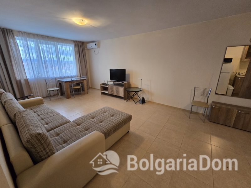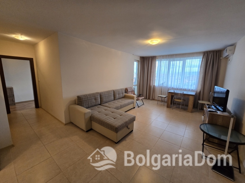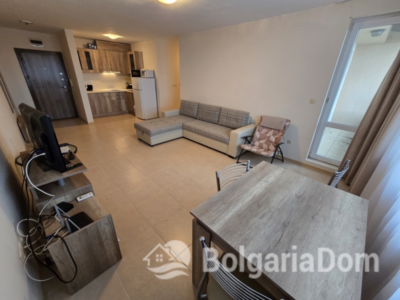 Квартира с одной спальней имеет общую площадь 80 кв.м. Планировка: зона прихожей, просторная гостиная с кухонной и обеденной зонами, спальня, ванная комнатас душевой кабиной, балкон. Квартира расположена на шестом жилом этаже в здании с лифтом. Квартира продается с мебелью и бытовой техникой.