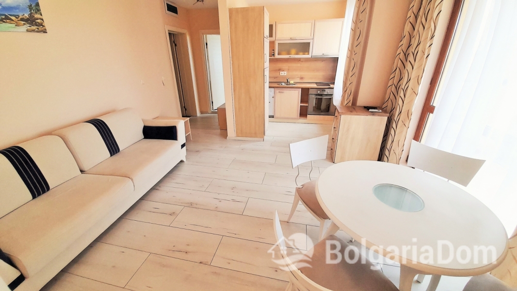 Предлагаем на продажу квартиру с 1 спальней в хорошем комплексе. Квартира расположена на 6 этаже. Площадь 60 квм, состоит из гостиной с кухней, балкона, санузла и спальни.