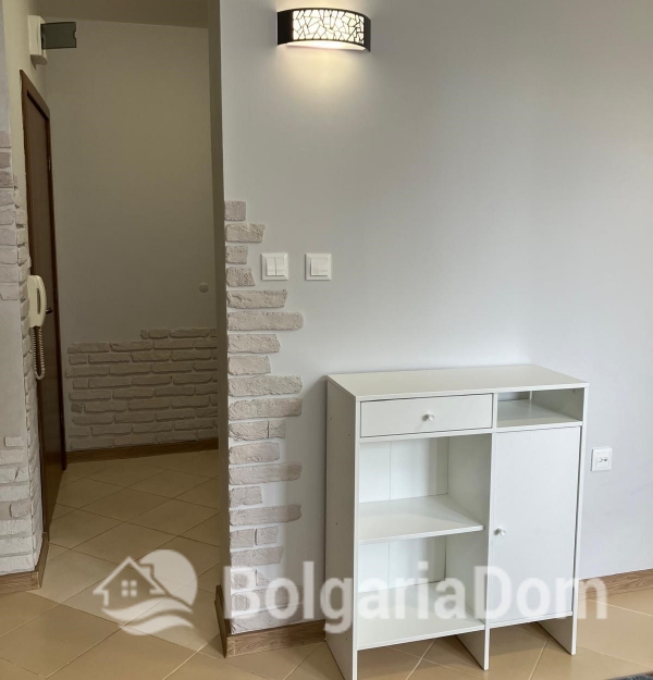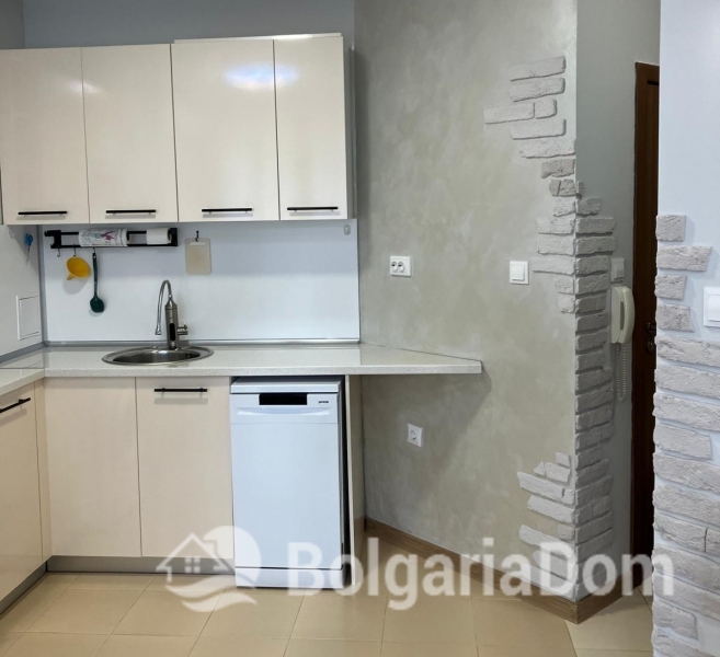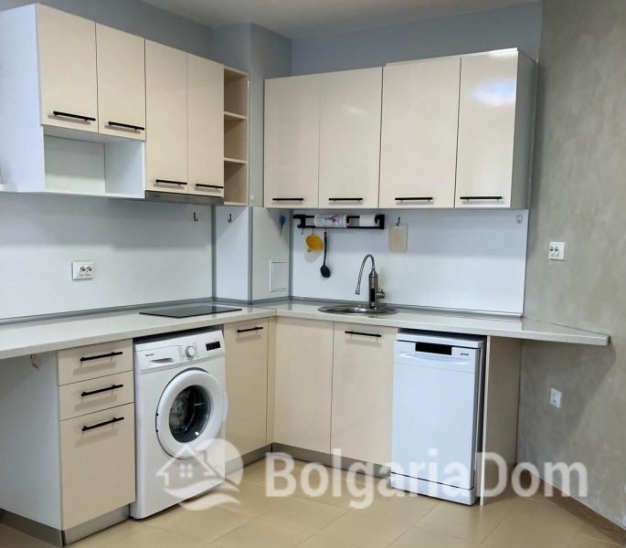 Квартира площадью 58 кв.м. расположена на 2 этаже в здании с лифтом. Планировка: прихожая, гостиная с кухней, спальня, ванная комната, балкон с видом на бассейн. Квартира продается с мебелью и бытовой техникой. Отличное состояние.