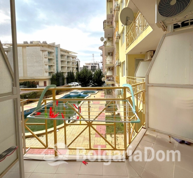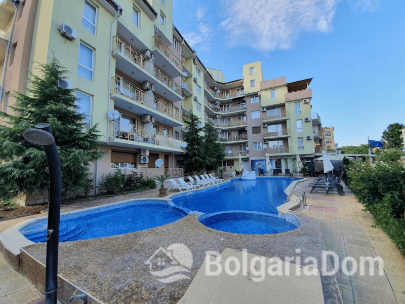 Предлагаем на продажу квартиру с видом на бассейн в небольшом жилом комплексе, расположенном в тихом районе курорта Солнечный Берег.