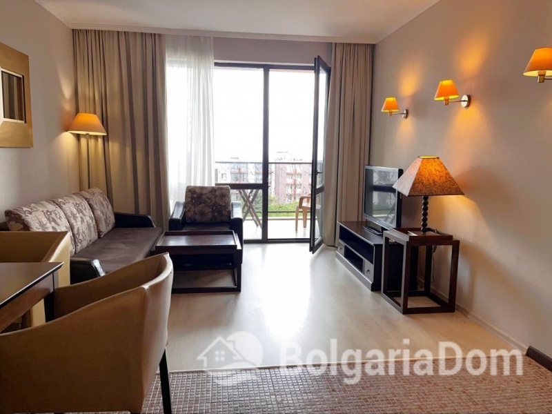 Предлагаем на продажу красивую квартиру с видом на море и на бассейн в шикарном СПА-комплексе на курорте Солнечный Берег, в 100 метрах от роскошного песчаного пляжа.