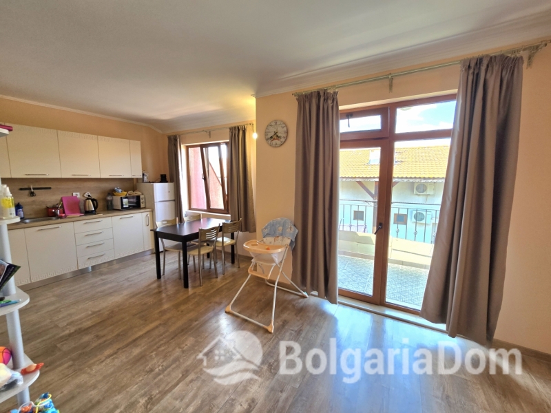 Квартира площадью 80 м² расположена на 3-м жилом этаже (без лифта). Просторная, уютная и полностью меблированная, с возможностью перепланировки в трёхкомнатную.